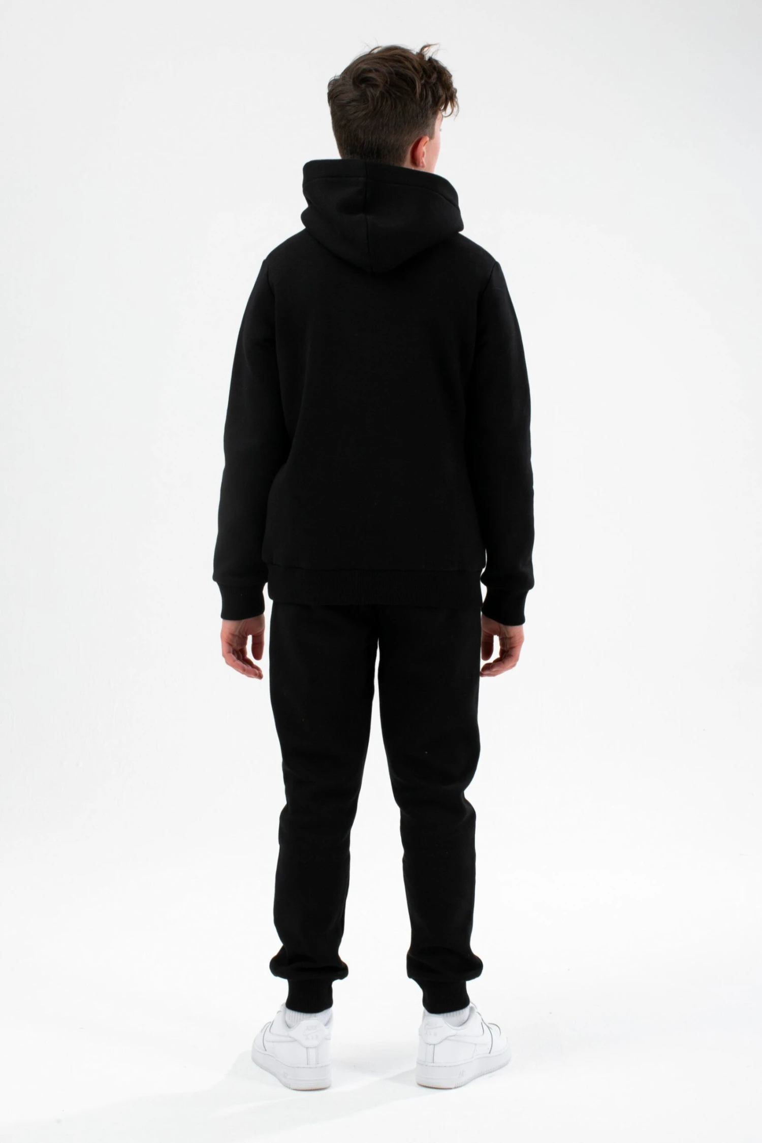 The HYPE. Black Kids Overhead Hoodie & Jogger set is perfect for those off-duty casual days. Designed in a black fabric base with the ultimate soft-touch sweat fabric for supreme comfort. The kids hoodie highlights a fixed hood, fitted hem and cuffs, finished with the iconic HYPE. script logo across the front. The joggers boast an elasticated waistband and fitted cuffs with the HYPE. mini script logo. Wear stand alone or as a set with a pair of box fresh kicks to complete the look. Machine wash at 30 degrees.