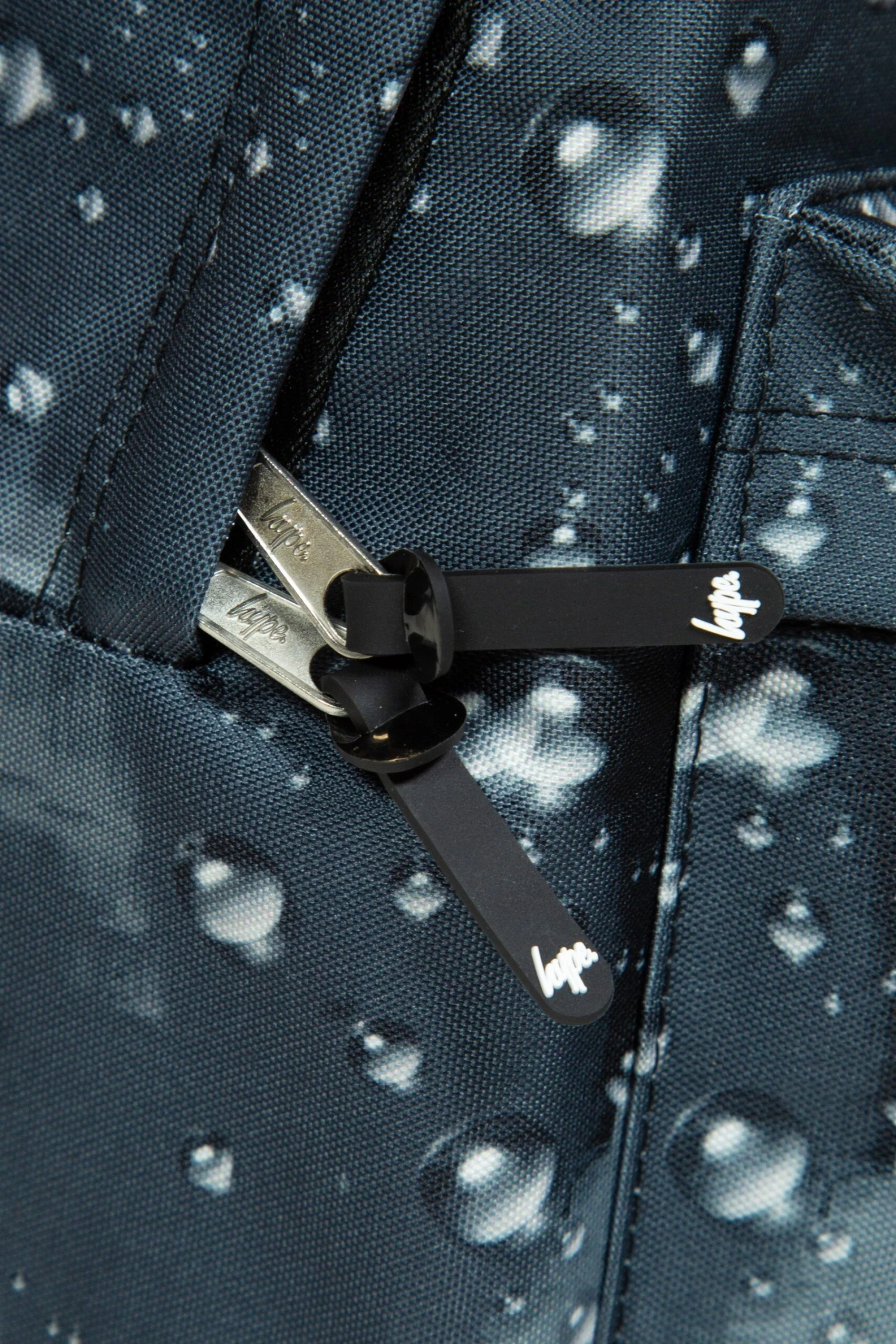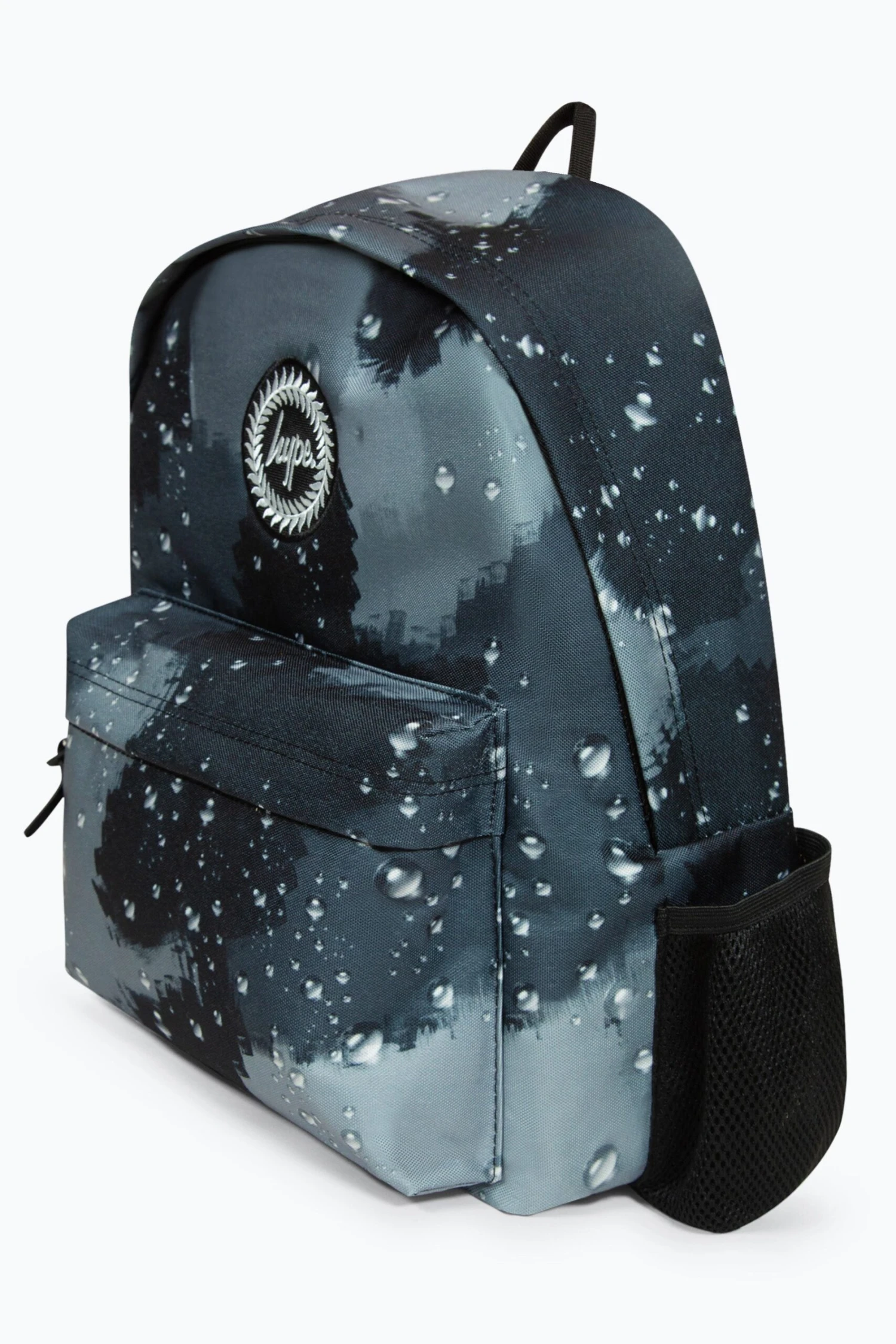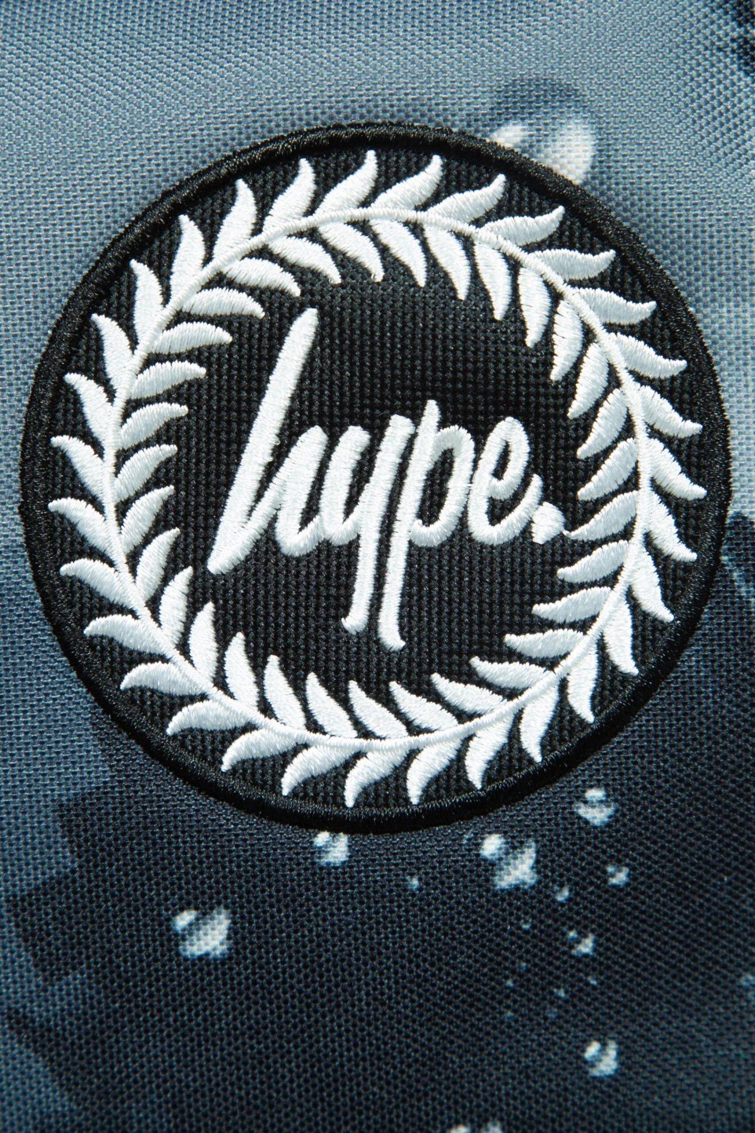 The HYPE. Black Rain Drop Camo Badge Backpack is your new accessory staple. With our signature all-over camo print with a black rain inspired injection in a contrasting navy and grey colour palette. Measuring at 42cm x 30cm x 12cm, finished with a front mini pocket, grab handle, embossed zips, branded inside lining. Boasting the iconic HYPE. crest badge in monochrome embroidered on the front and straps offer supreme comfort with just the right amount of padding on the back. This backpack features a mesh side bottle holder and inside padded laptop sleeve and velcro fastening. Wipe clean only.