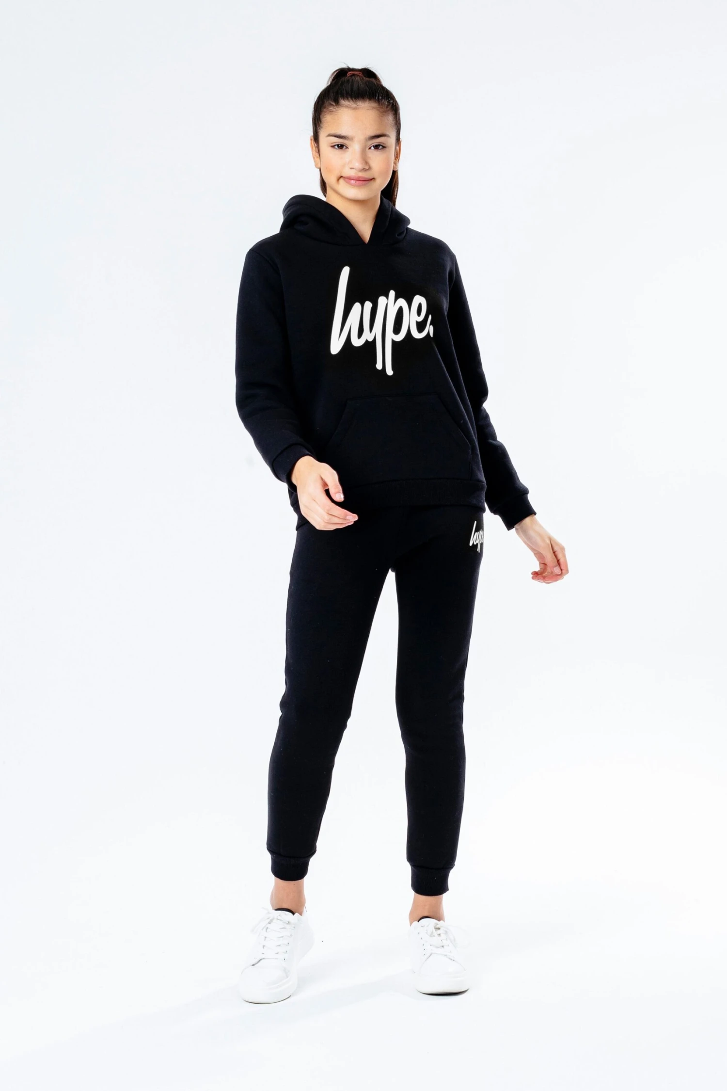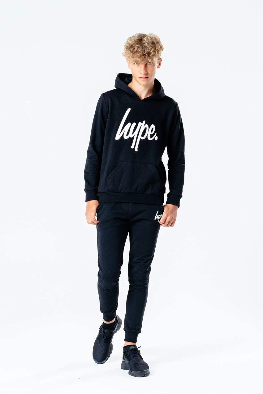 The HYPE.ย Black Script Kids Tracksuit is perfect for off-duty casual days. Designed in a monochrome colour palette with the supreme amount of comfort from the soft-touch fabric base. The kids hoodie highlights a fixed hood, fitted hem and cuffs, finished with the iconic HYPE. script logo in white across the front. The joggers boast an elasticated waistband and fitted cuffs with the HYPE. mini script logo. Wear stand alone or as a set with a pair of box fresh kicks to complete the look. Machine wash at 30 degrees.