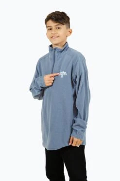 Introducing the HYPE. Charcoal Snow Kids Fleece, perfect for wearing over your base layer long-sleeved tee. Designed in a fleece soft-touch fabric base to insulate body heat. With a high neck, quater neck zip, long sleeves and script logo on the front. Machine washable.