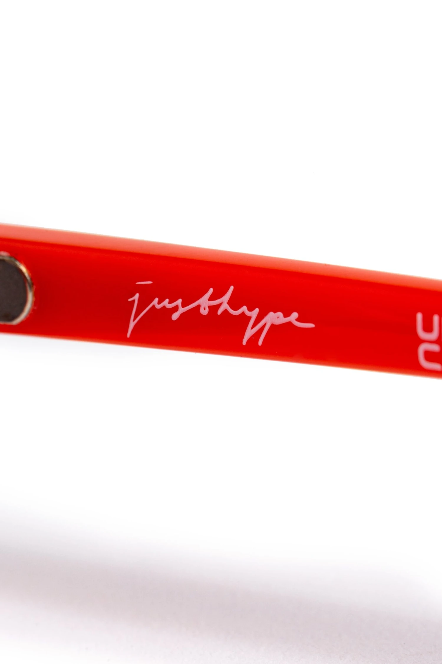 Whether youโre heading on holiday, sunning it up in the back garden, or just trying to hide a hangover, the HYPE. Cube Red Sunglasses have you covered. Designed in our unisex cube sunglasses shape with gloss red sims and arms, solid smoke tinted lenses, and the HYPE. scribbleย logo in white. Wipe gently with a soft cloth to clean.