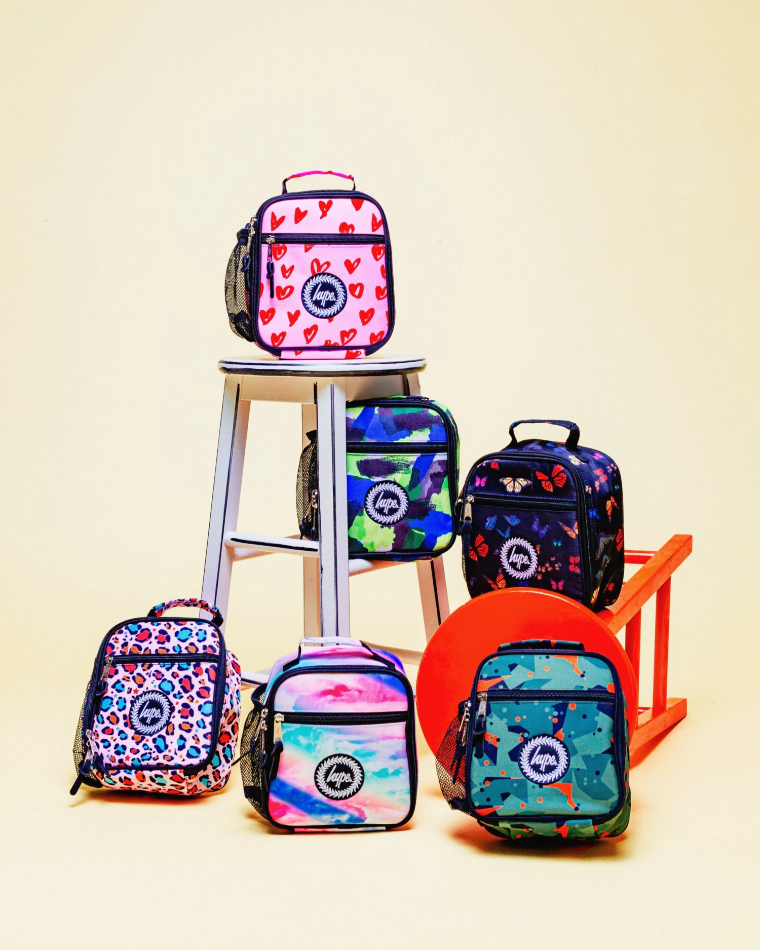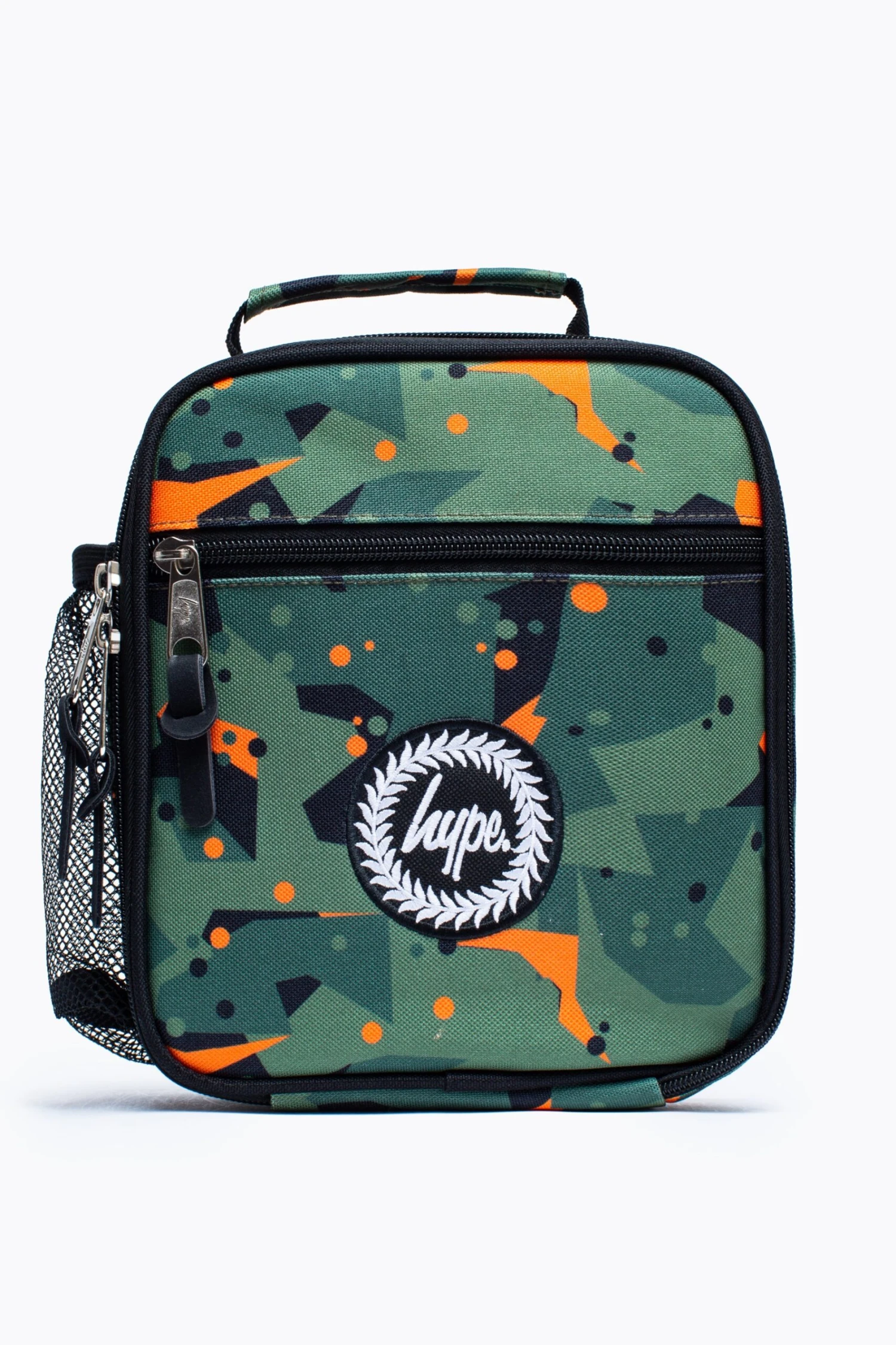 Camo is back and better than ever with the HYPE. Geo Camo Lunch Bag. Designed in our standard unisex lunch box shape and style, this lunch box is perfect for storing your school lunch, or even as a cute picnic transporter. Featuring a grab handle, mesh side pocket to store your water bottle, and inside thermal lining to keep your lunch fresh. Wipe clean only.