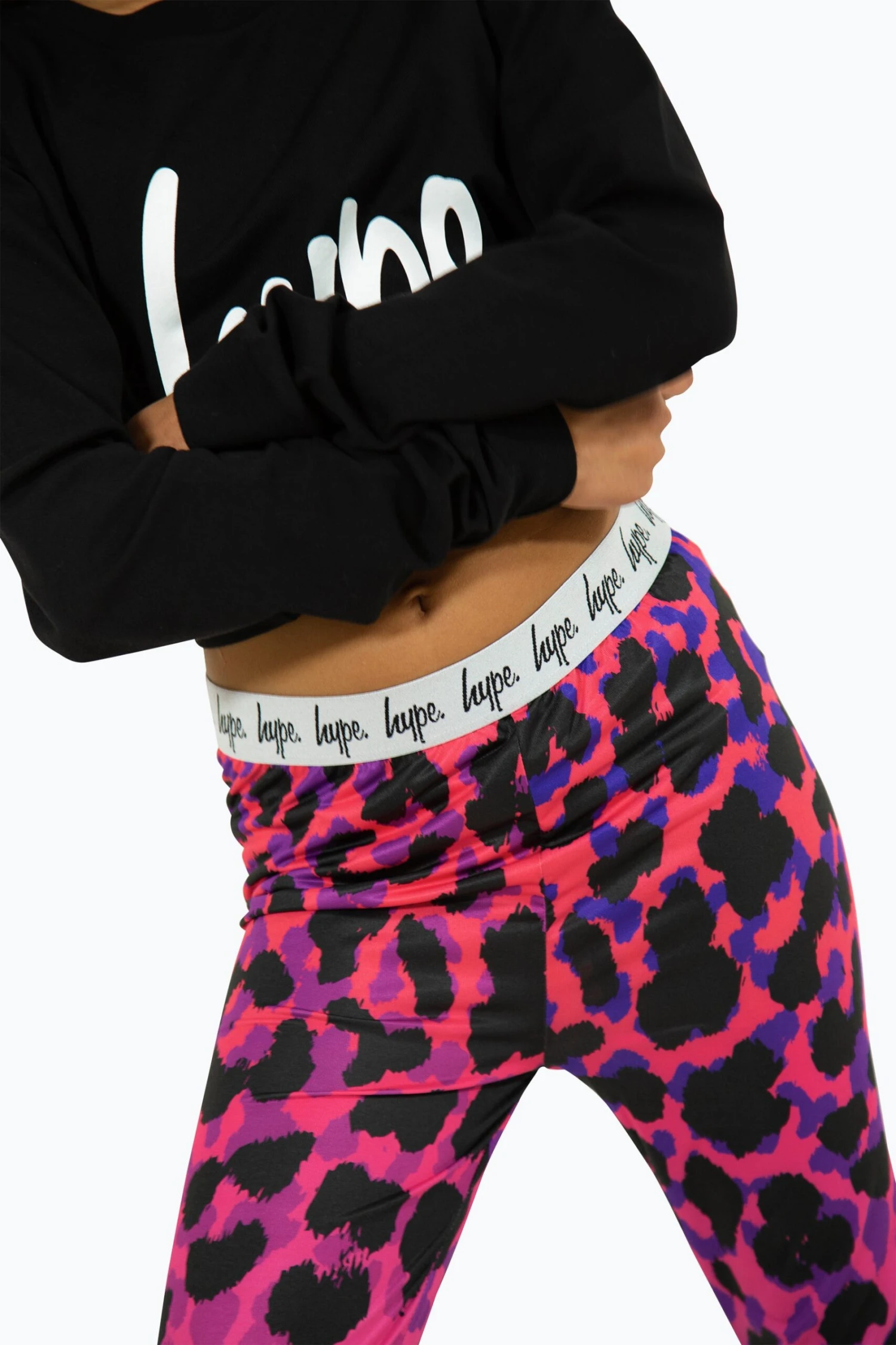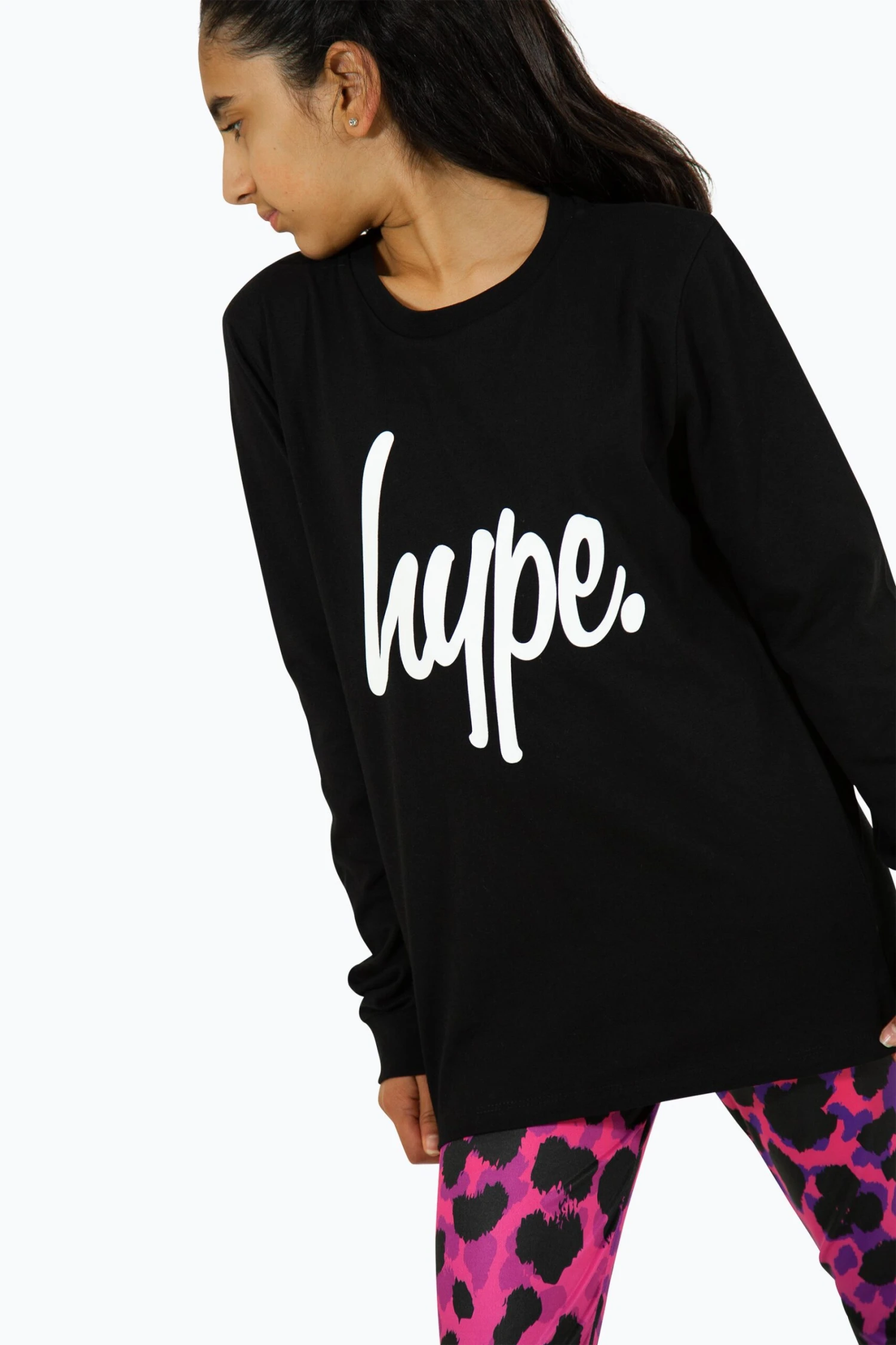The HYPE. Girls Black Love Leopard Long-Sleeved T-Shirt and Leggings Set is perfect for mixing ‘n’ matching with your seasonal ‘drobe. The tee is designed in a 95% polyester 5% elastane black fabric blend in our standard long-sleeved t-shirt shape and is finished with a crew neckline and the HYPE. script logo in contrasting white. The leggings are designed in a 100% cotton soft touch fabric base, featuring an all-over love leopard print and finished with a monochrome embossed elasticated waistband. Machine wash at 30 degrees.