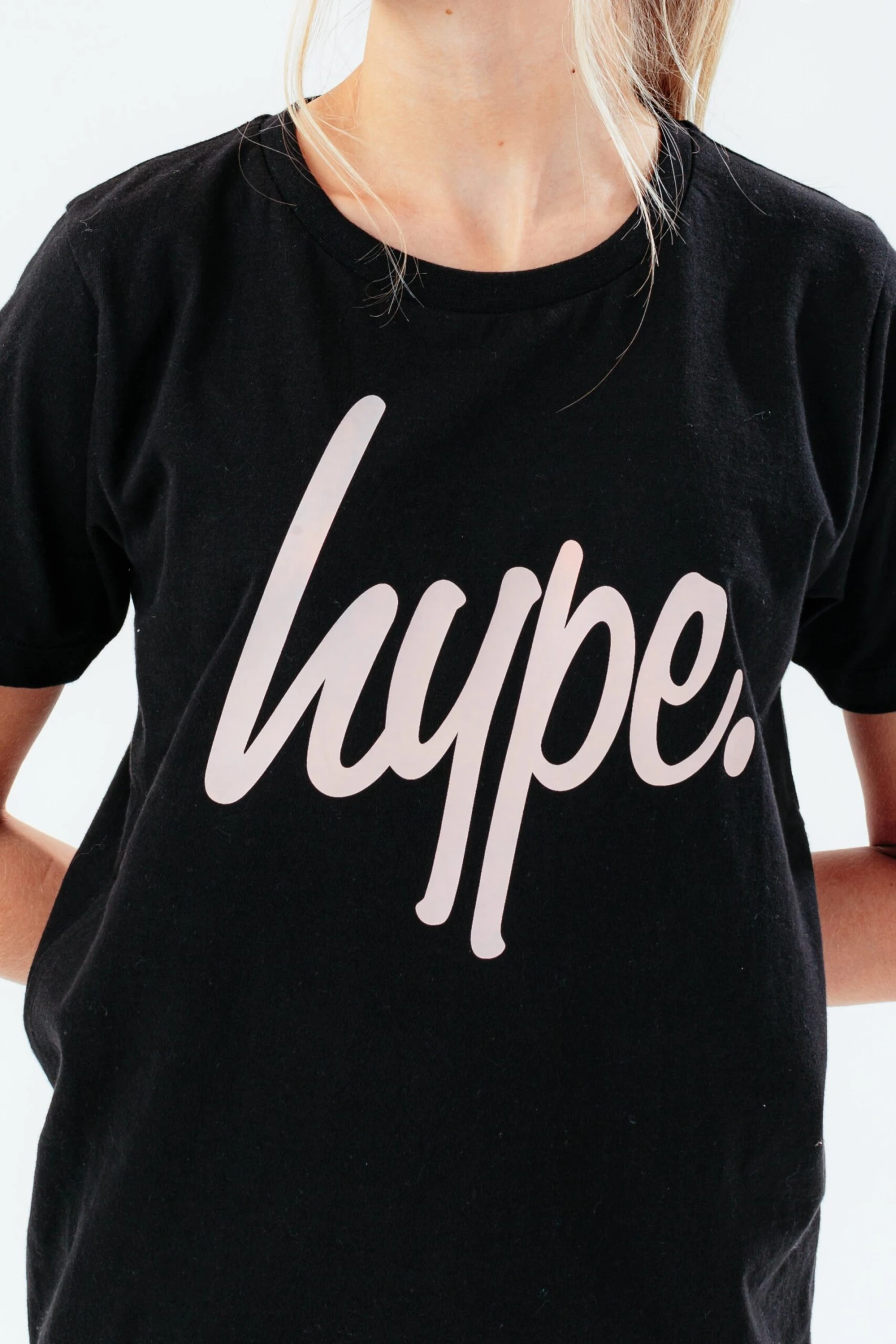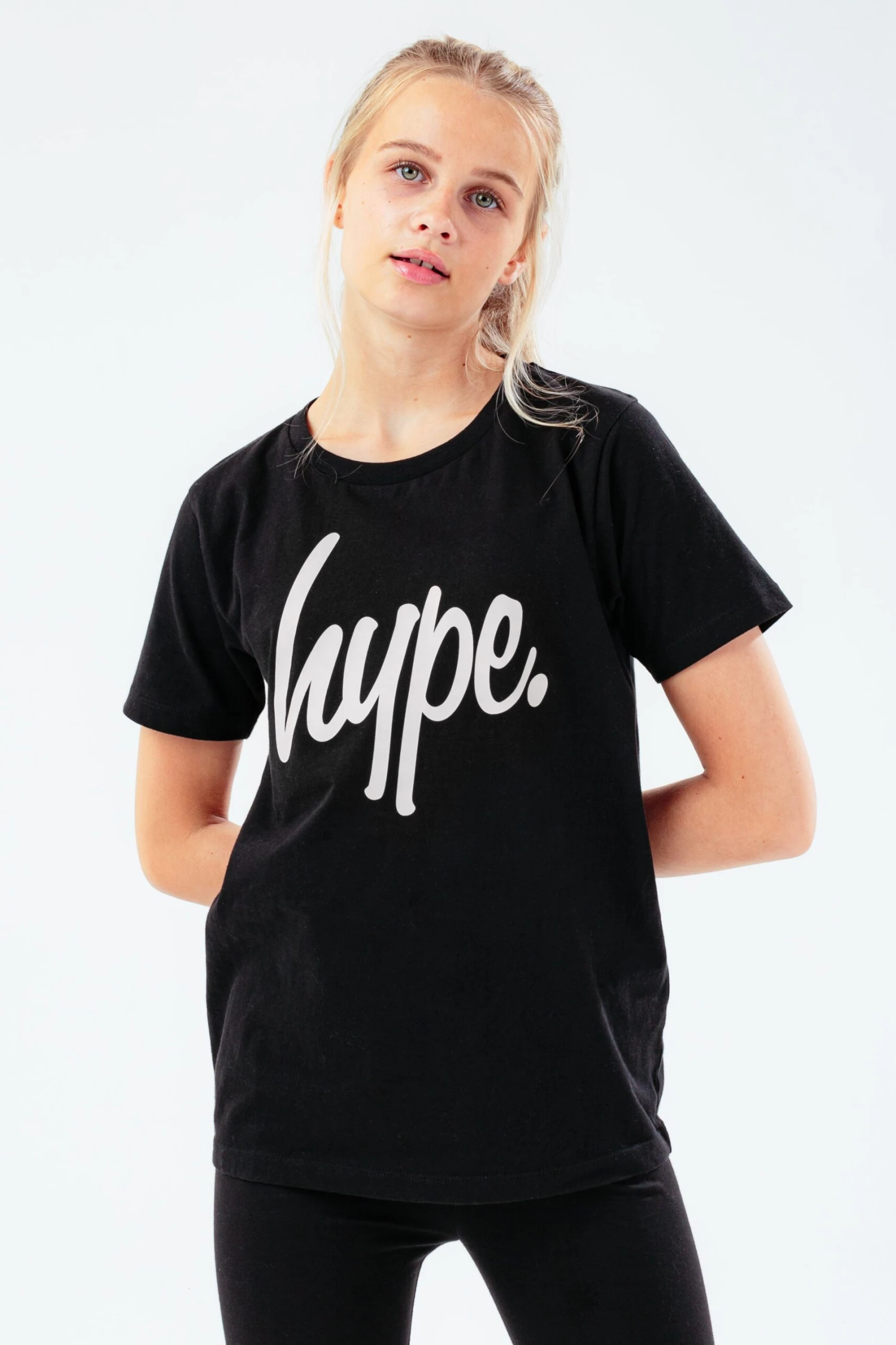 The HYPE. Black Script Kids T-Shirt and Leggings set is perfect for summer days. Stay on trend with our unisexkids oversized tee shape and matching leggings set. Designed in a soft touch fabric base for the ultimate comfort. Finished with the iconic HYPE. script logo across the front and mini on the leggings. Wear with your favourite trainers and over sized jacket to complete the look. Machine washable.