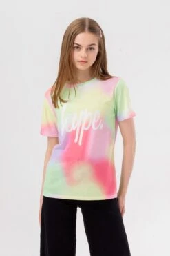 Make a statement in the HYPE. Girls Pastel Spray Paint Script T-Shirt. Designed in our standard kids tee shape with a soft touch 95% polyester 5% elastane fabric blend for the ultimate comfort. Boasting an all-over pastel spray paint print, featuring the iconic HYPE. logo in contrasting white script, and finished with a crew neckline and short sleeves. Wear with jeans and jacket for a casual-smart fit or joggers for a casual look. Machine wash at 30 degrees.