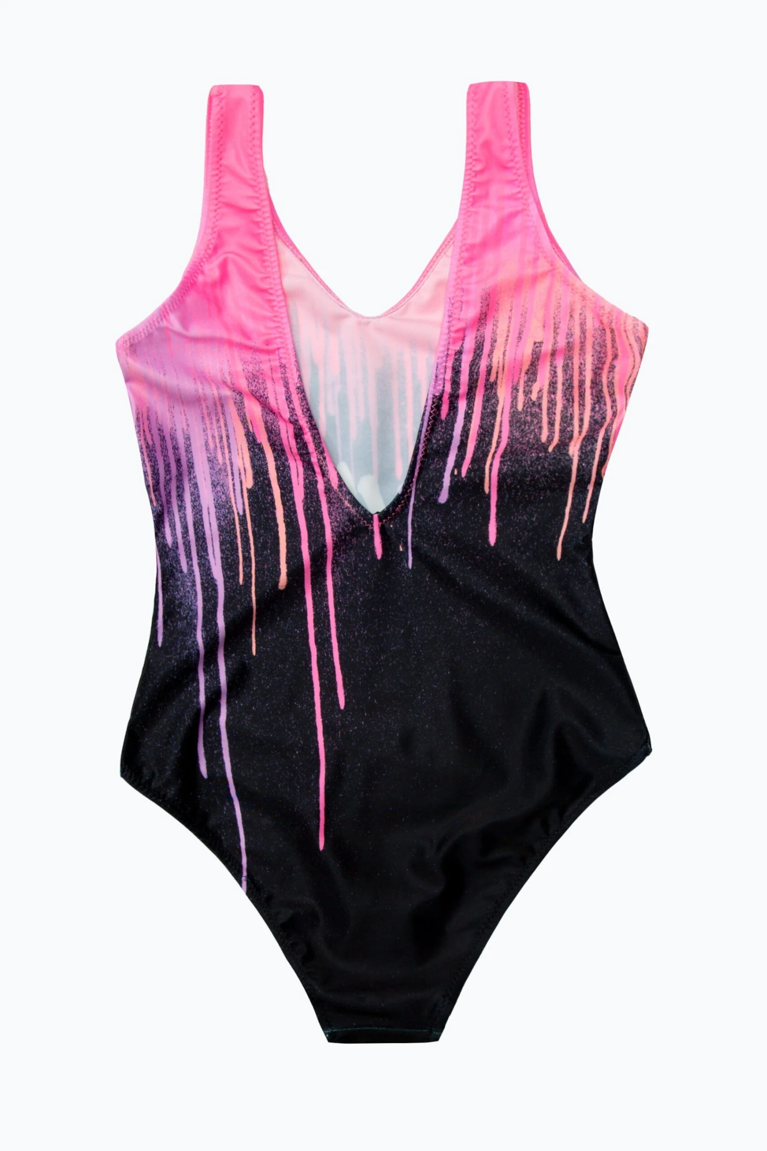 Swim is in. Meet the ultimate girls swimwear you’ll want to wear everyday of summer, the HYPE. Pink Drip Script Swimsuit. In our standard swimsuit shape, the design features our drip inspired print in a pink and black colour palette with the iconic HYPE. script logo in a contrasting white across the front. Wear with the matching sliders, pair of sunnies and you’re ready for the pool. Machine wash at 30 degrees.