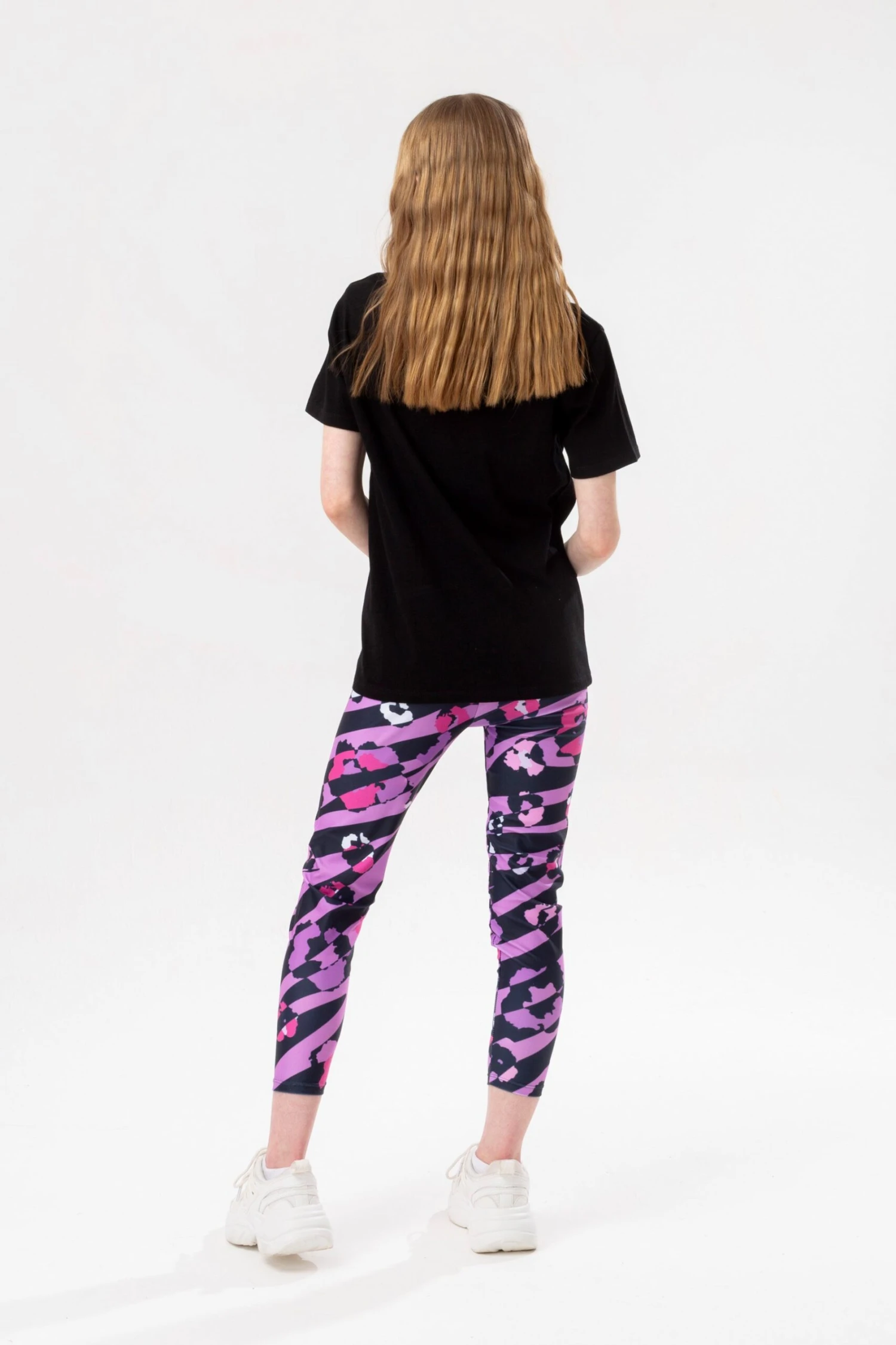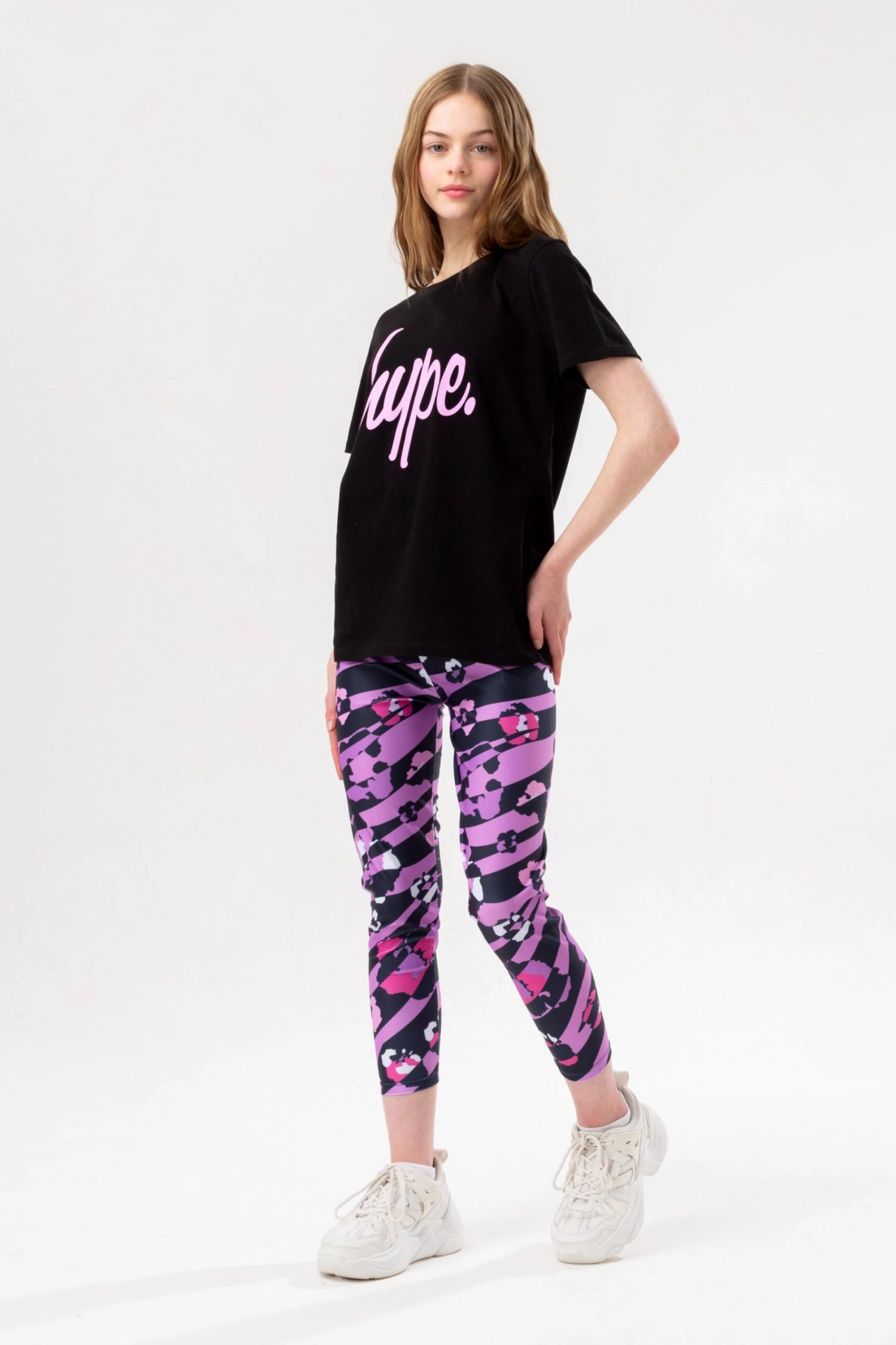 Brighten up your look with the HYPE. Girls Purple Leopard T-Shirt and Leggings Set. The tee is designed in our standard unisex t-shirt shape in a 100% poly fabric base for supreme comfort, featuring a crew neckline, short sleeves, and the iconic HYPE. script logo in a purple leopard zebra print. The legging design features an elasticated waistband and all-over purple leopard zebra print. Wear with a pair of box-fresh kicks and crossbody bag. Machine wash at 30 degrees.