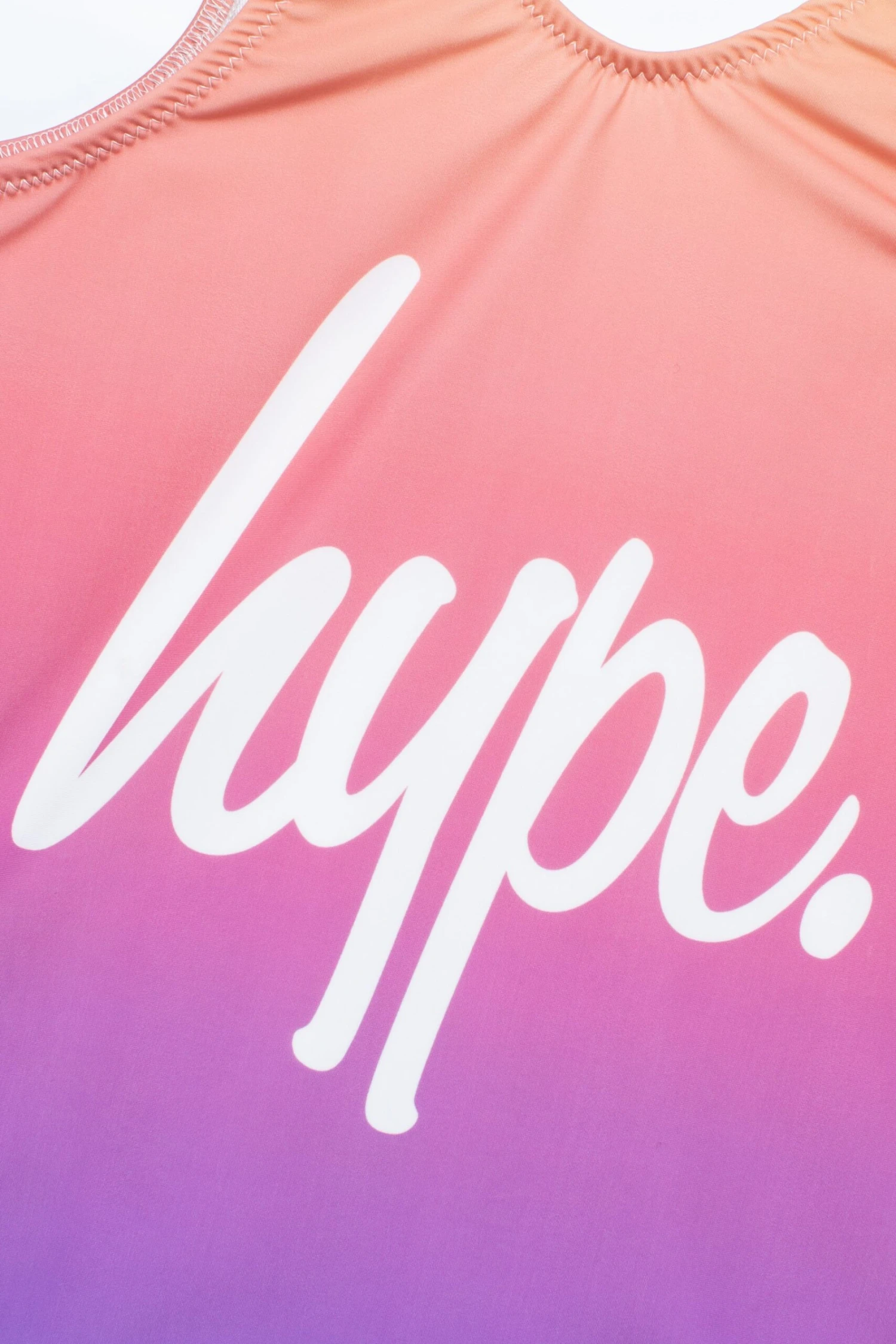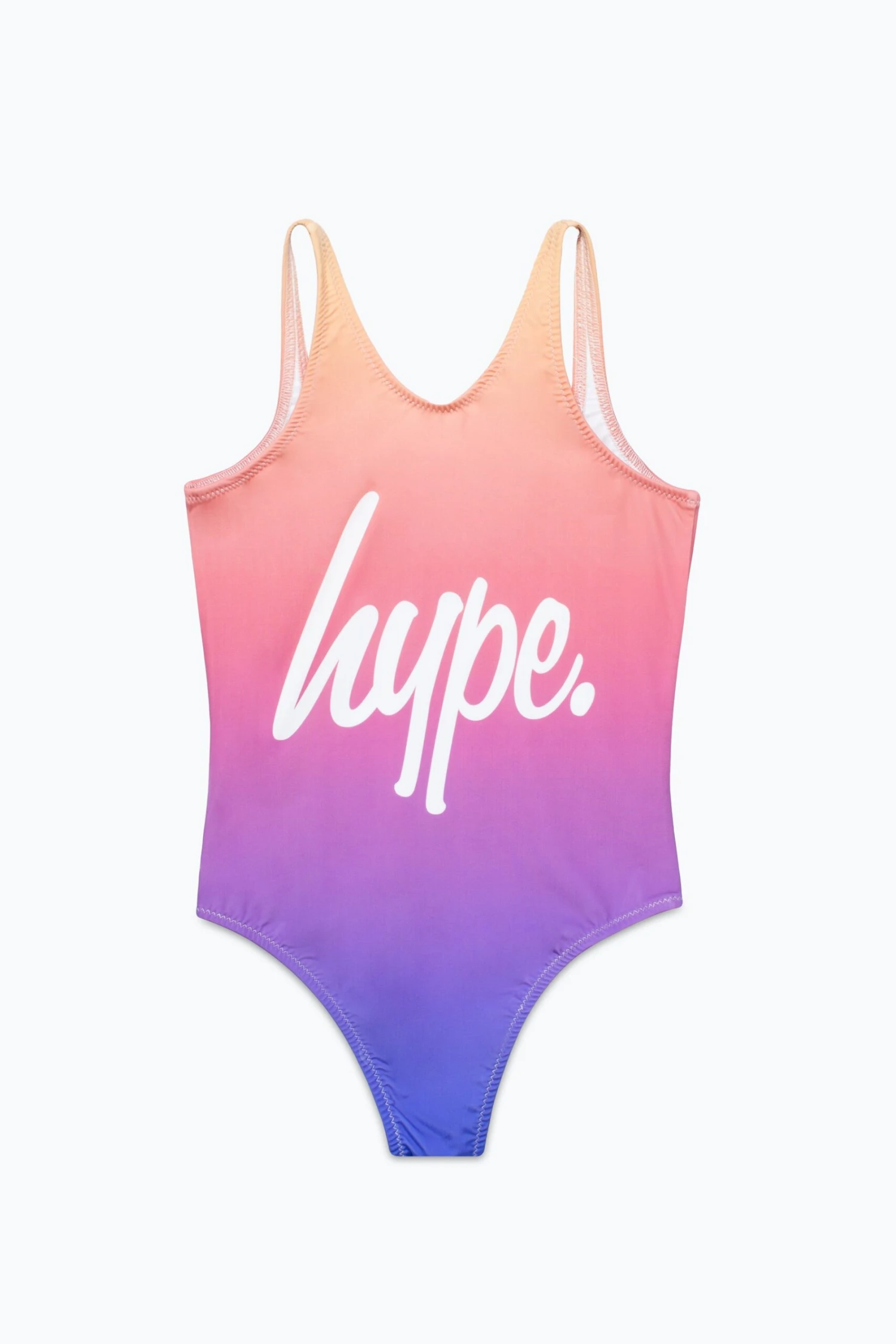 The HYPE. Girls Purple Yellow Fade Script Swimsuit is designed in a 100% polyester fabric base in our standard girls swimsuit shape. Featuring an all-over purple and yellow fade print, finished with the HYPE. logo in contrasting white script. Grab the matching t-shirt, hoodie, and leggings to complete the set. Machine wash at 30 degrees.