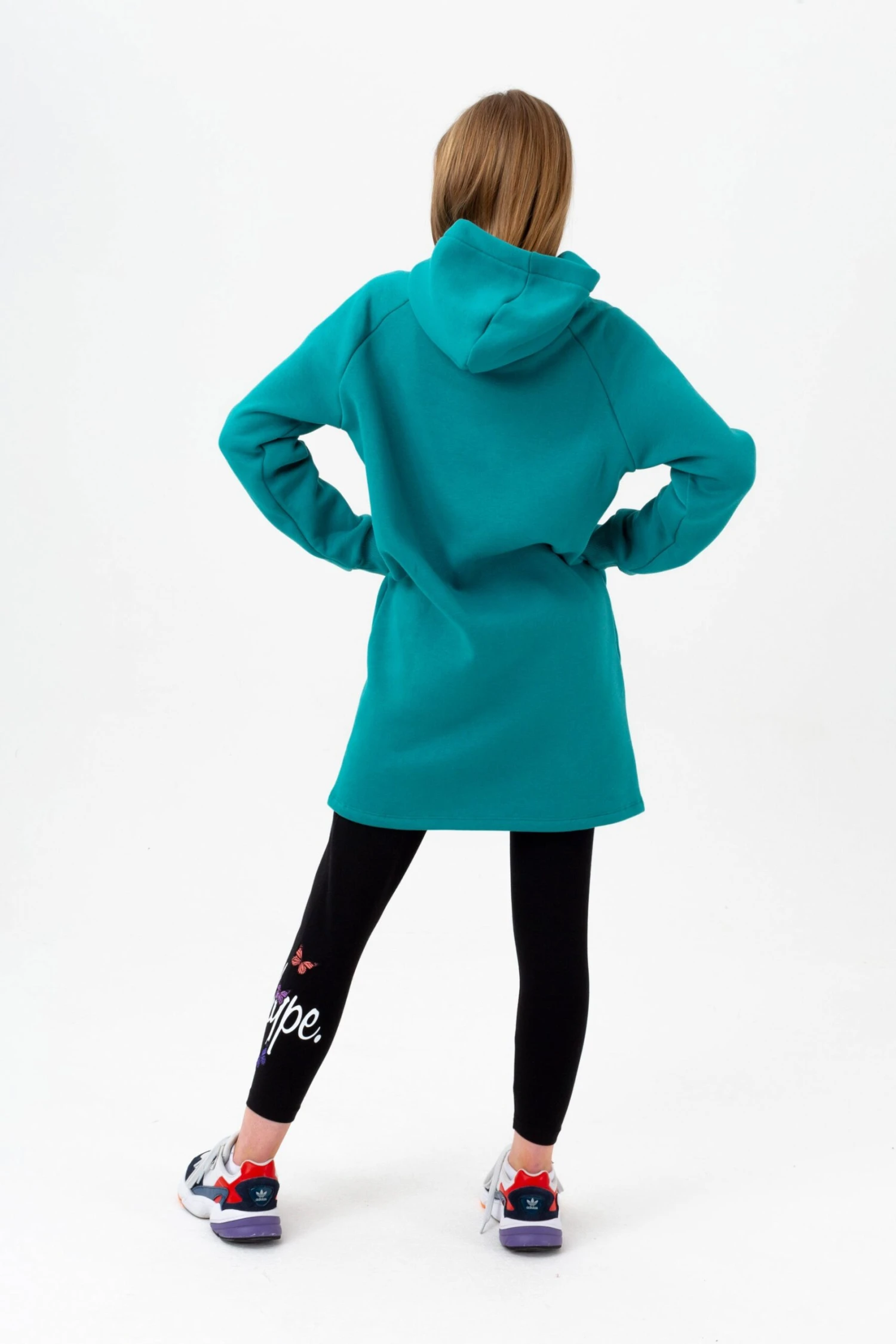 Let us introduce you to the HYPE. Girls Teal Longline Script Side Slit Hoodie. Designed in our longline hoodie shape in teal and finished with fitted hem and cuffs, hood and the HYPE. script mini logo in white. Wear with a pair of high top sneakers for the ultimate casual vibe. Machine wash at 30 degrees.