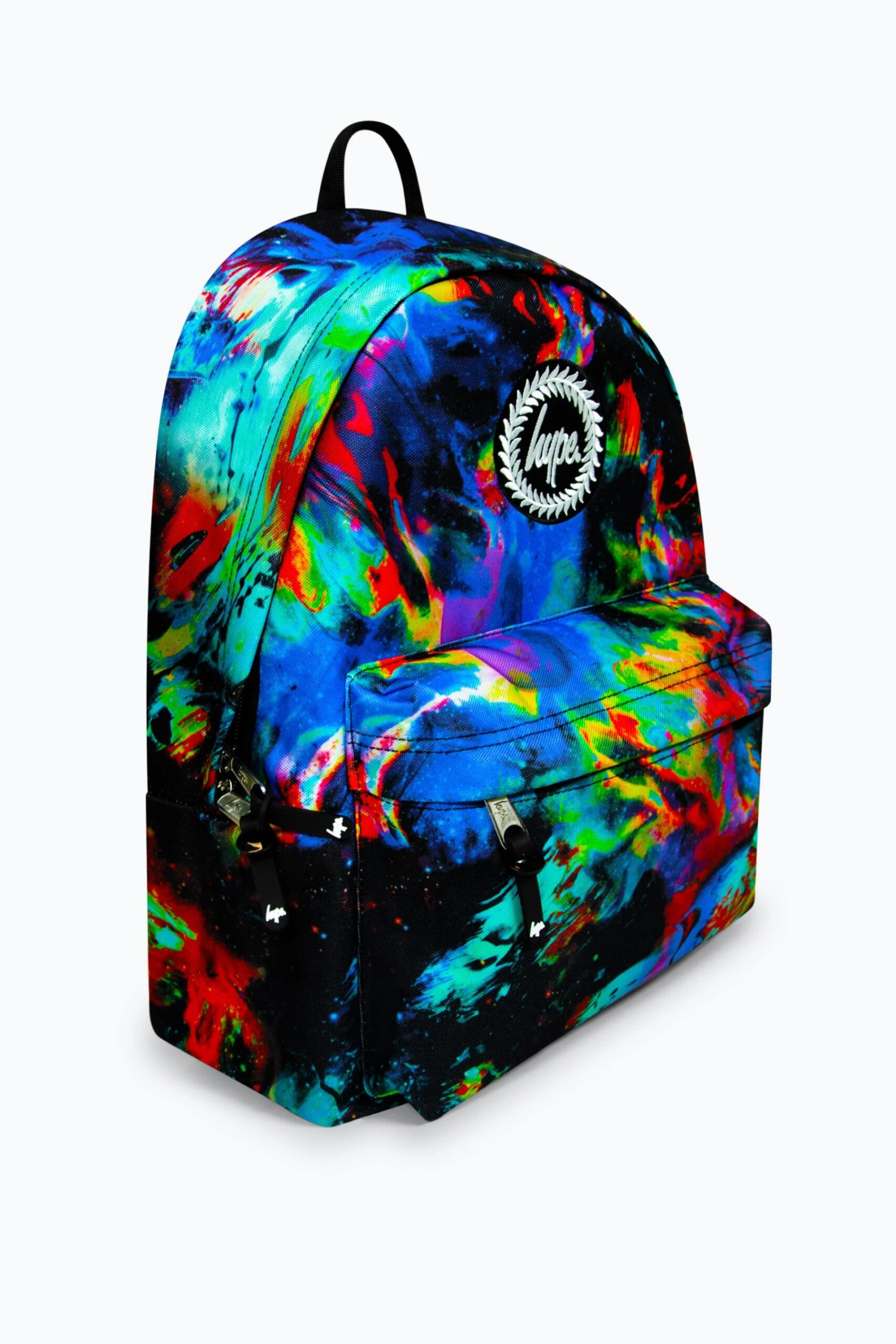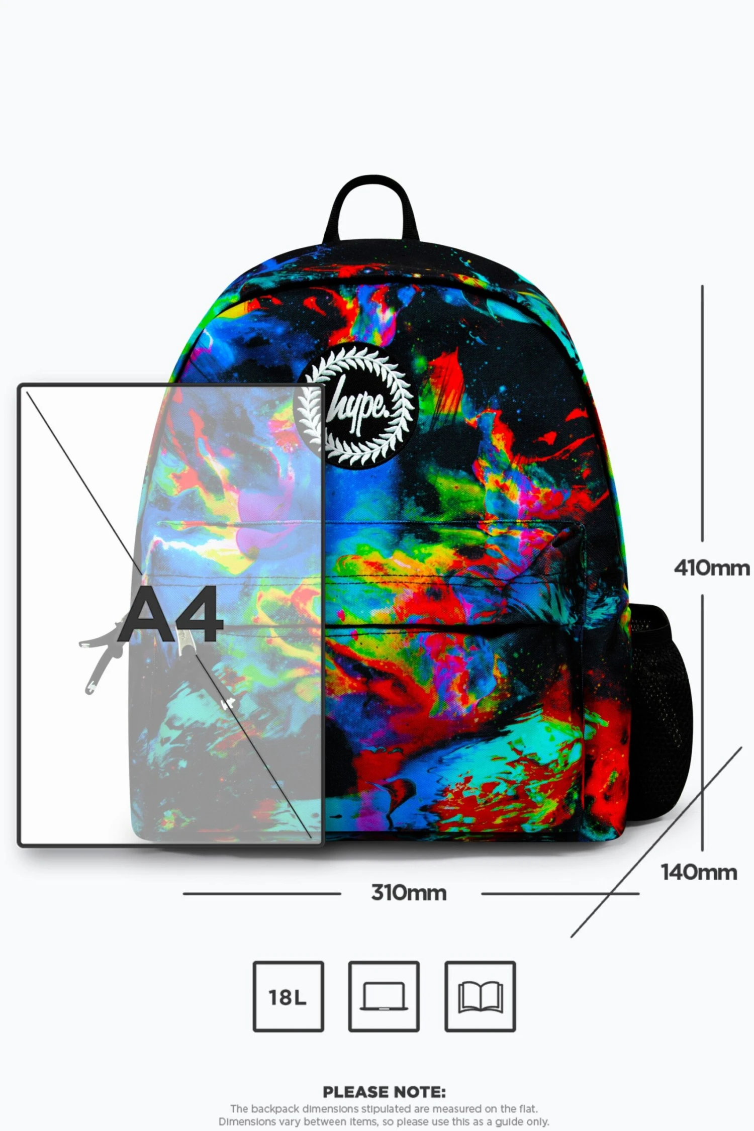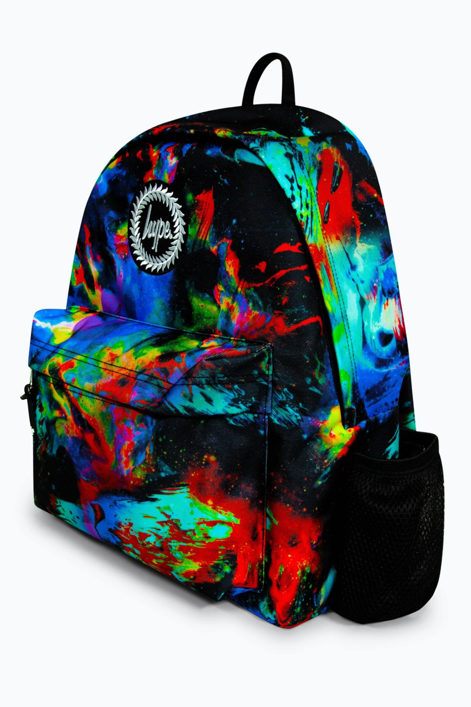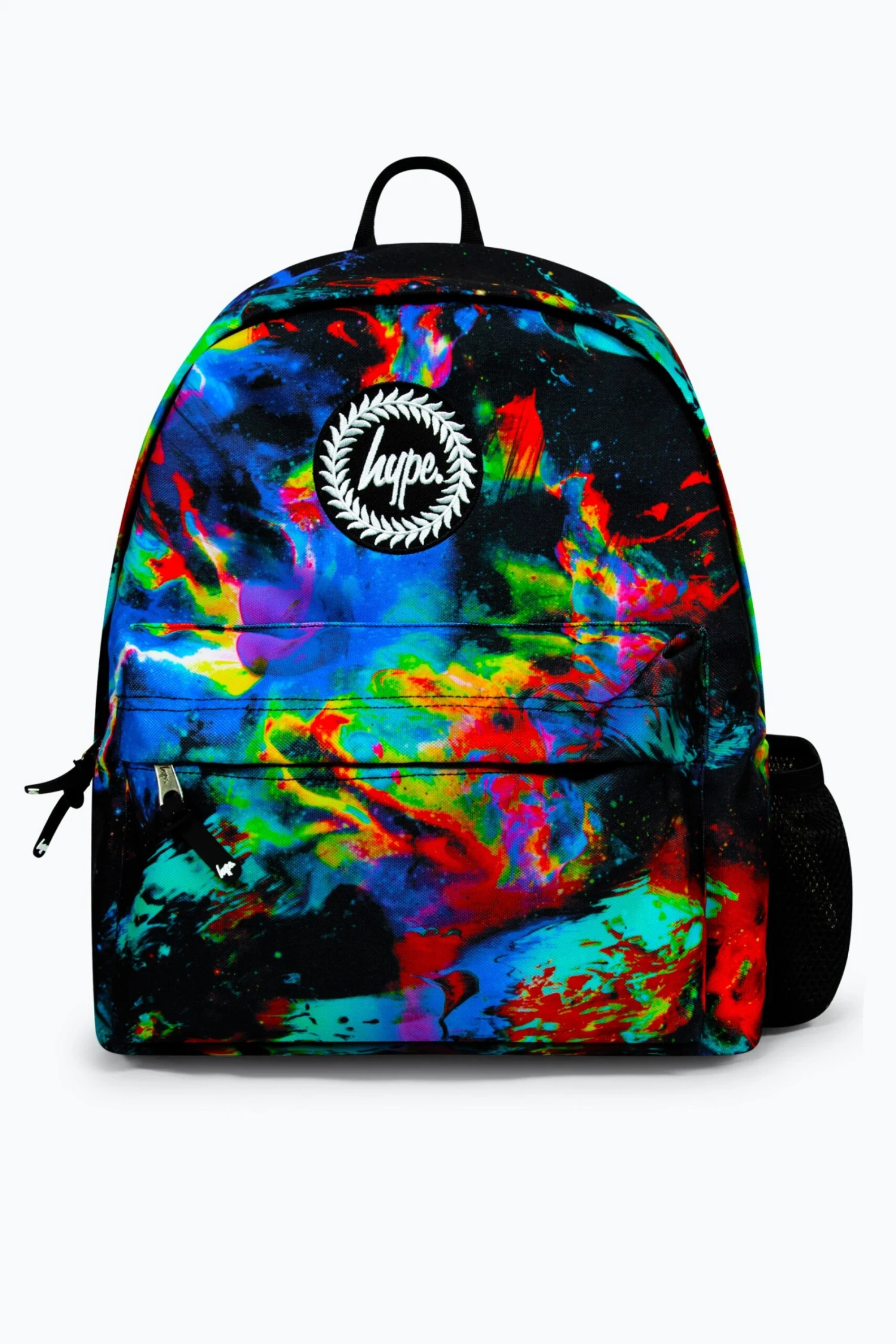 The HYPE. Global Detector Badge Backpack is your new accessory staple. Measuring at 42cm x 30cm x 12cm, finished with a front mini pocket, grab handle, embossed zips, branded inside lining. Boasting the iconic HYPE. crest badge in monochrome embroidered on the front and straps offer supreme comfort with just the right amount of padding on the back. This backpack features a mesh side bottle holder and inside padded laptop sleeve and velcro fastening. Wipe clean only.