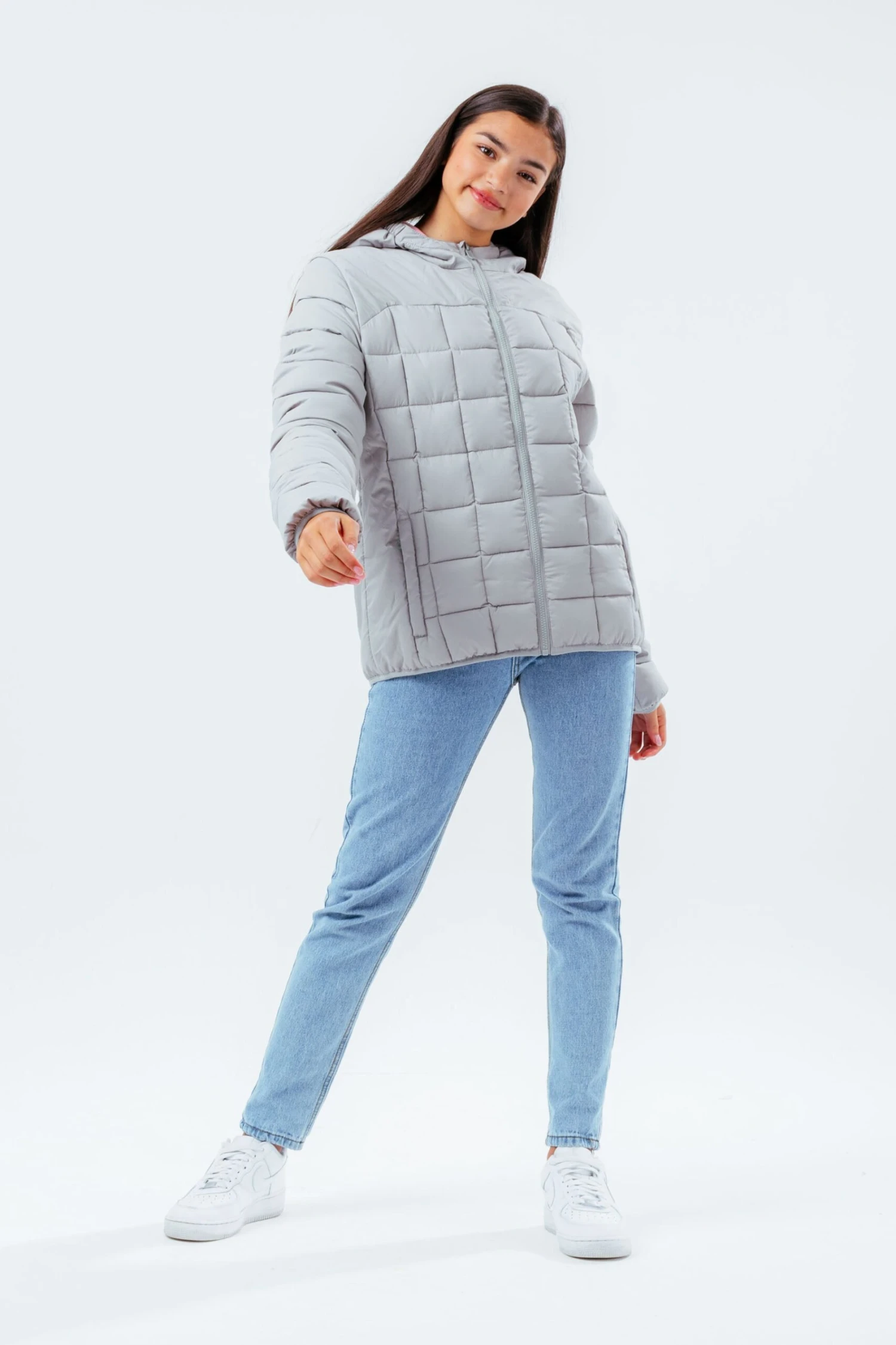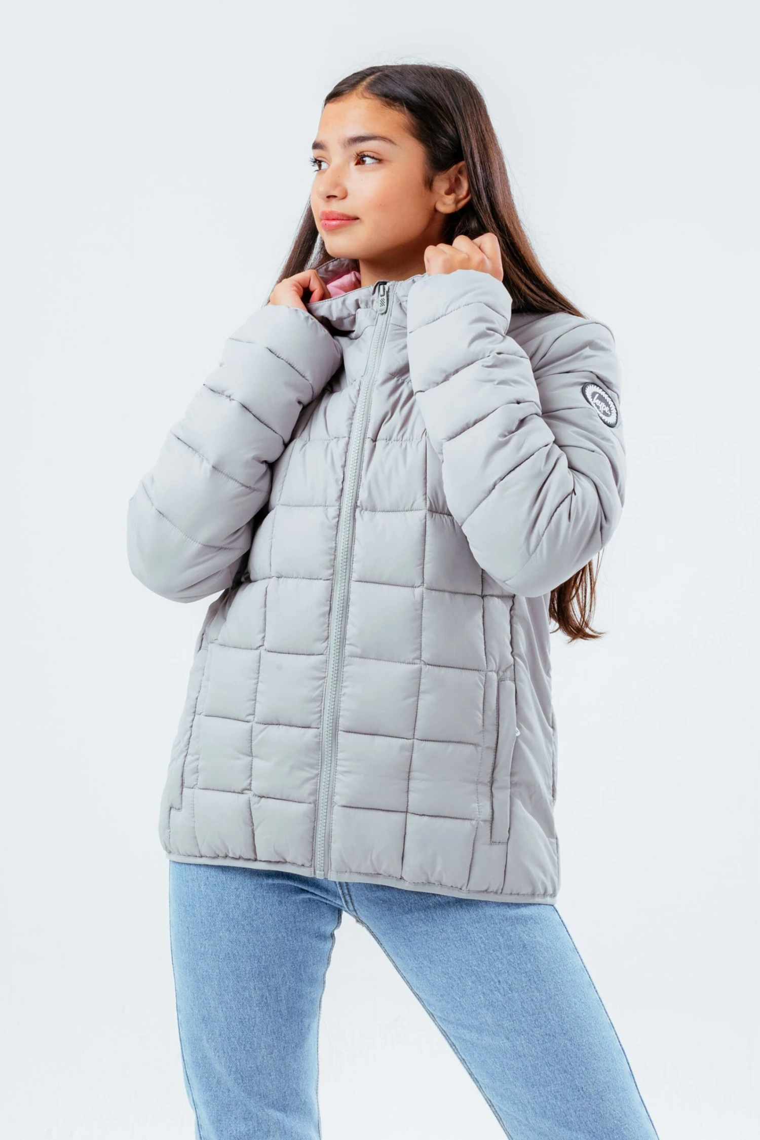 Don’t just keep warm and cosy in these colder months, do it with style with the HYPE. Grey Pink Baffled Kids Casual Jacket. Designed in our standard casual jacket shape in grey, complete with a pink inner lining, fixed hood, zip, fitted hem and cuffs, and the HYPE. crest logo on the arm. Machine wash at 30°C.