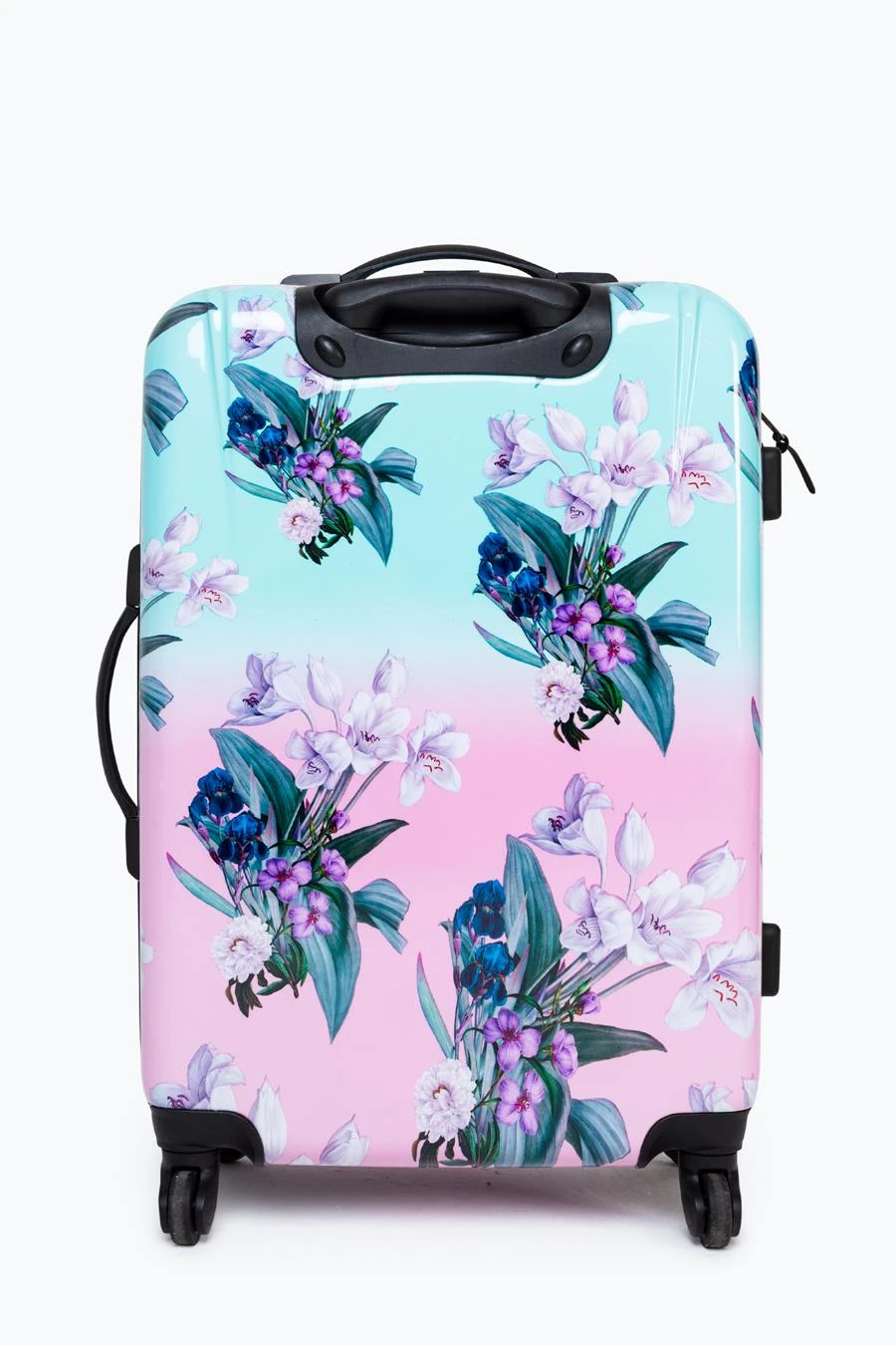 Travel with ease in style. 2019’s best selling backpack and accessory Floral Mint/Pink Fade print just got turned into luggage. Highlighting a polycarbonate shell, killer designs and a four wheel drive. Feautring printed logo inside lining and 50/50 packaging with compression straps and a zipped pocket.