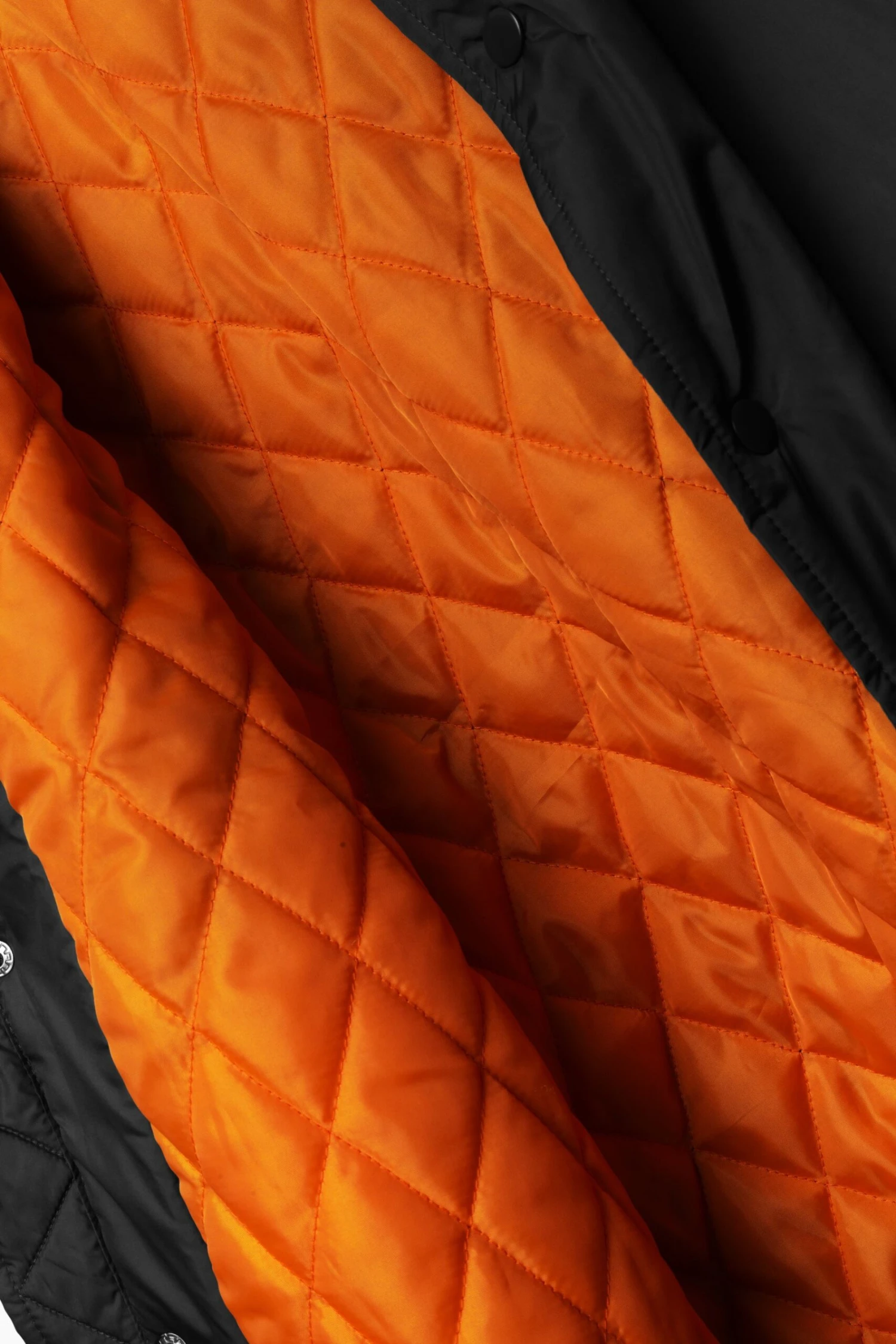 Introducing the HYPE. Adults Black Scribble Bomber Jacket. Designed in a soft-touch black fabric base in our standard bomber jacket shape. Boasting fitted cuffs, pockets, an orange inner lining, and a branded rubberised patch. Wear with an oversized tee and jeans for an on-trend look. Machine wash at 30 degrees.