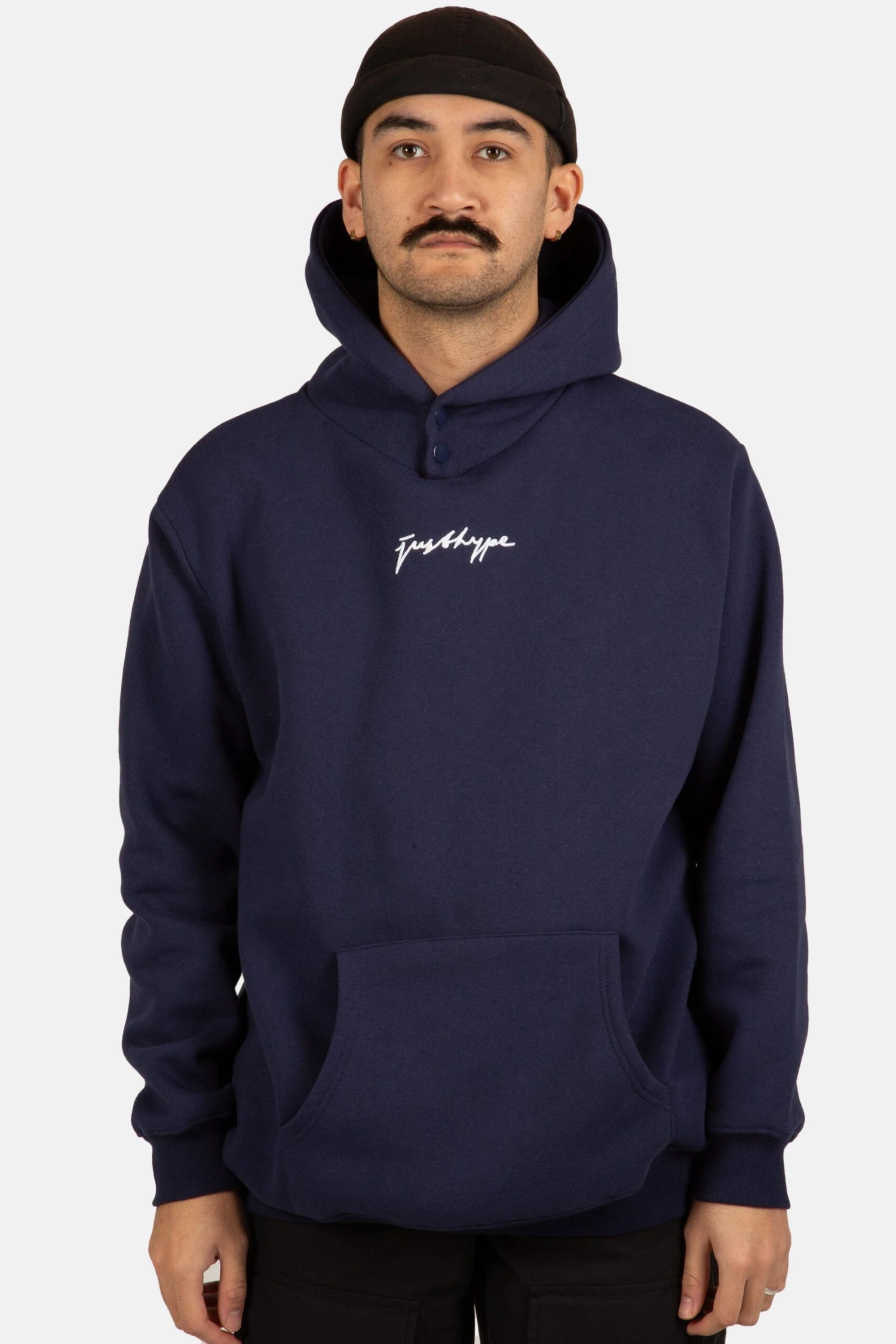Meet the Men?s Navy Scribble Hoodie, a must-have this season. Designed in an 80% cotton 20% polyester iron fabric blend for the ultimate comfortable fit in our new men?s hoodie shape. Featuring a fitted hem and cuffs, kangaroo pouch, press stood hood, and the JustHype scribble logo embroidered on the front in contrasting white. Wear with the matching t-shirt and joggers to complete the look. Machine wash at 30 degrees.