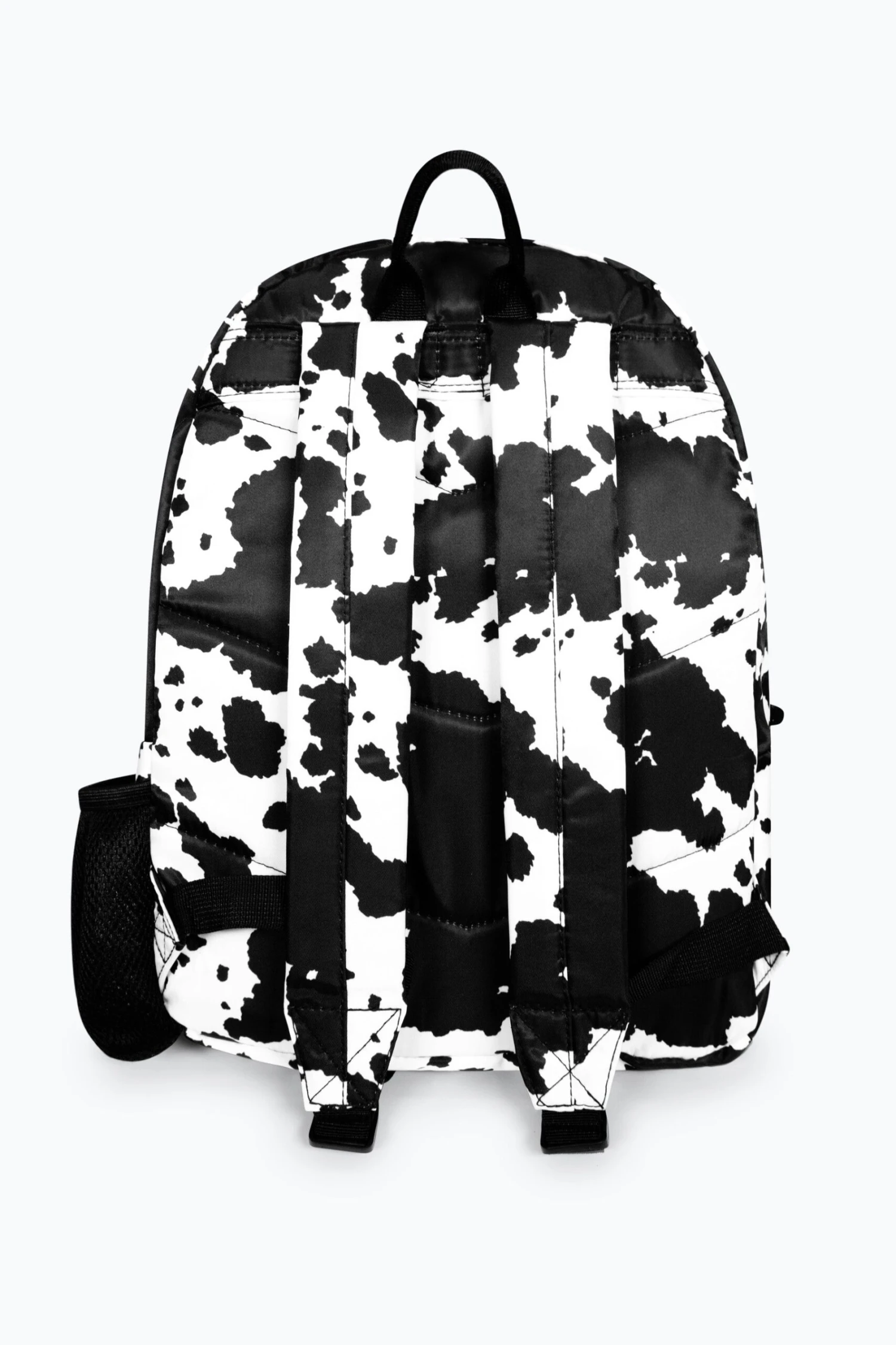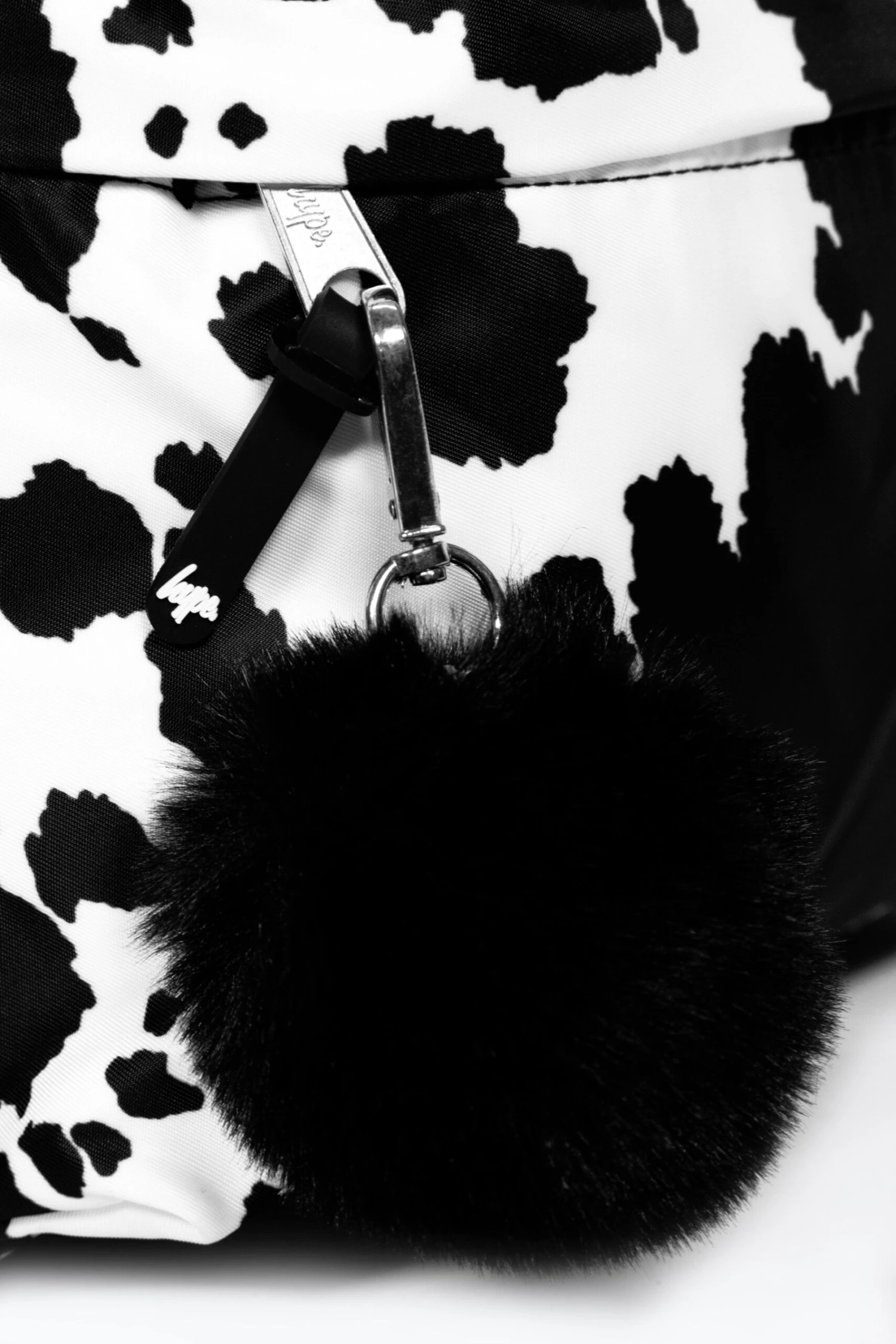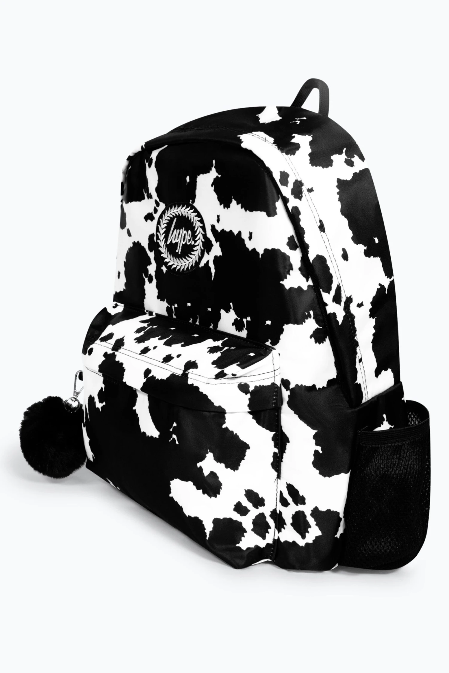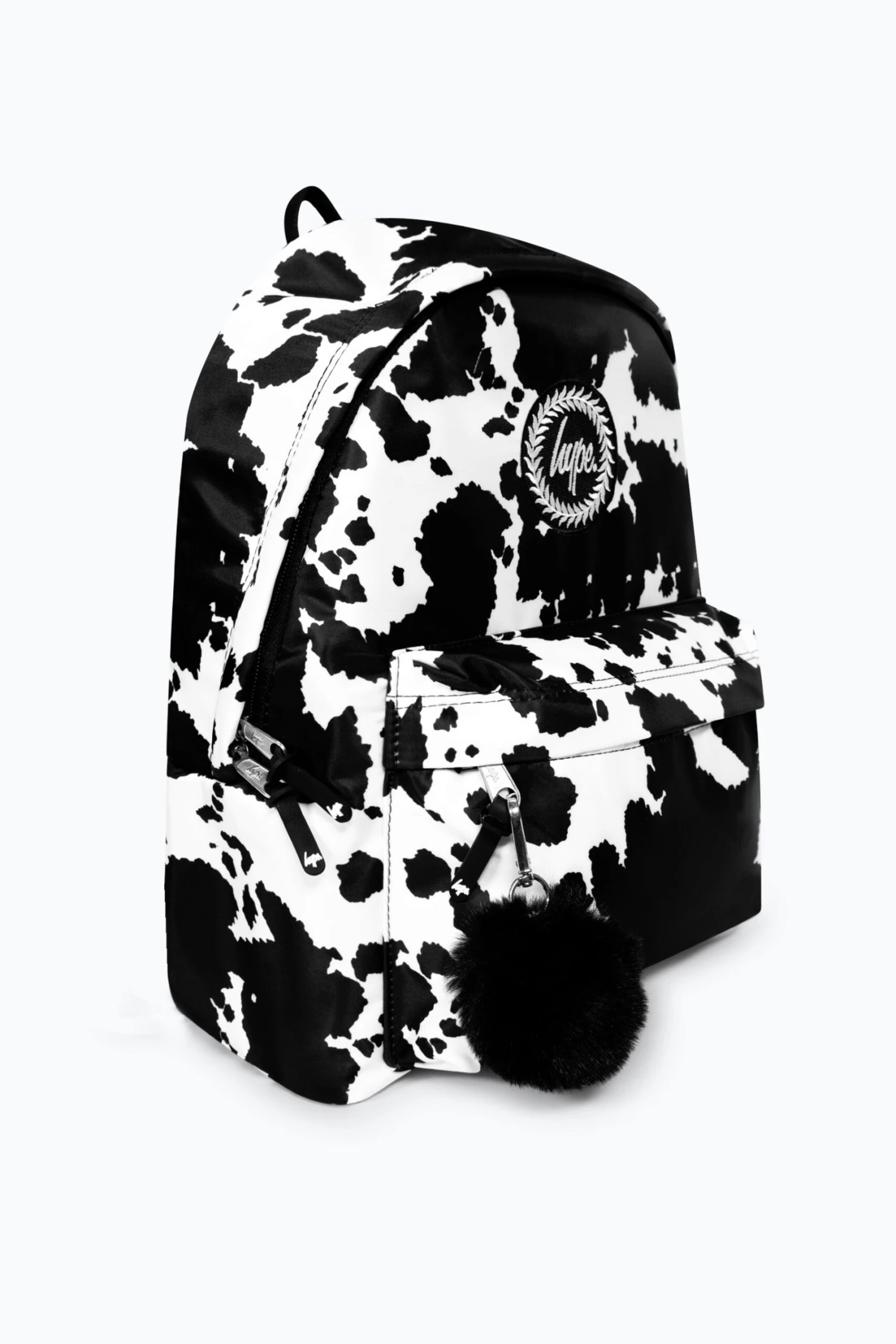The HYPE. Mono Cow Badge Backpack is your new accessory staple. With an all-over cow-inspired print in a monochrome colour palette – with a removable pom pom key chain. Measuring at 42cm x 30cm x 12cm, finished with a front mini pocket, grab handle, embossed zips, branded inside lining. Boasting the iconic HYPE. crest badge in monochrome embroidered on the front and straps offer supreme comfort with just the right amount of padding on the back. This backpack features a mesh side bottle holder and inside padded laptop sleeve and velcro fastening. Wipe clean only.