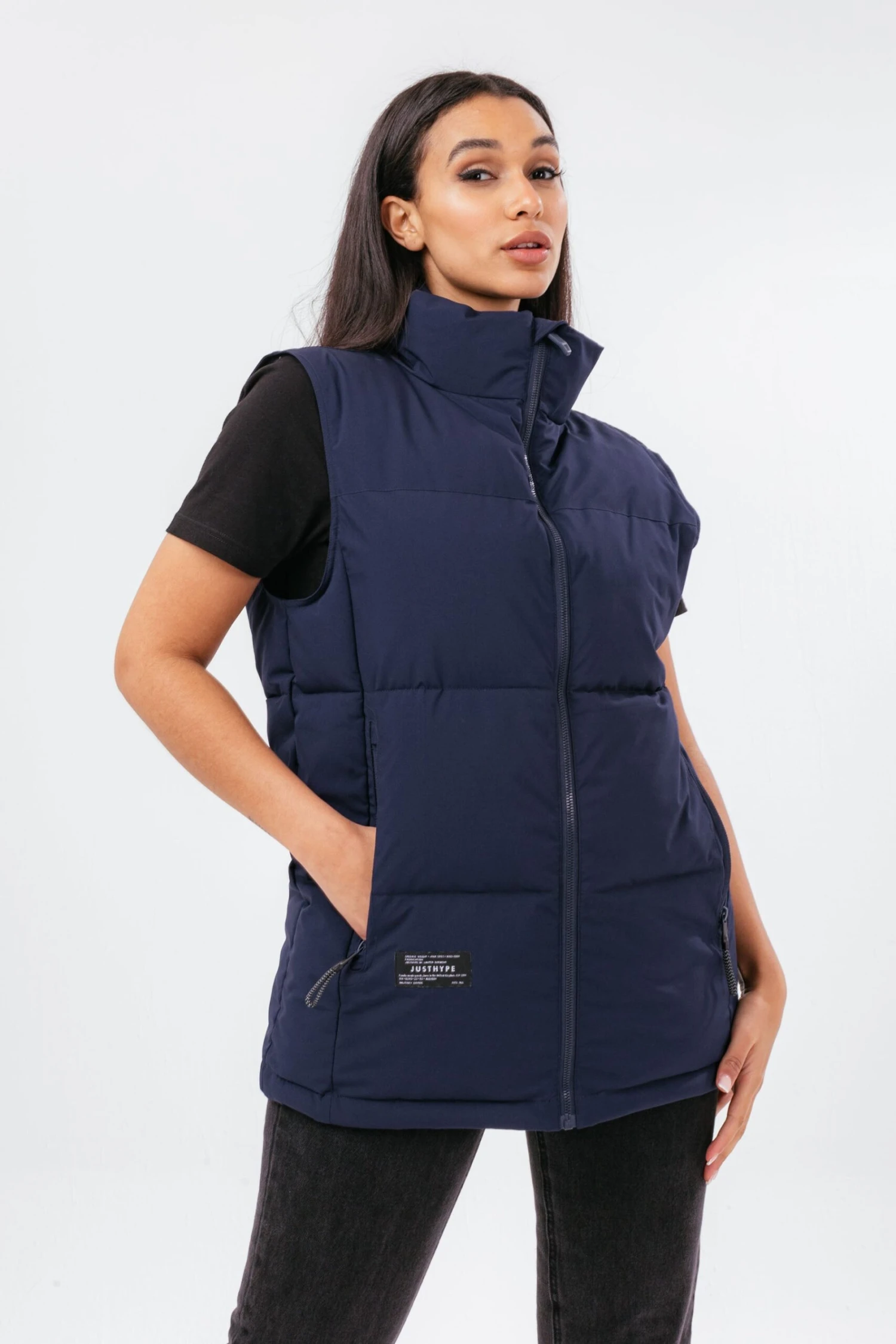 Don’t just keep warm and cosy in these colder months, do it with style with the HYPE. Navy Adult Gilet. Designed in our standard gilet shape in navy, complete with a high neck, zip, padding, and Just Hype label. Machine wash at 30°C.