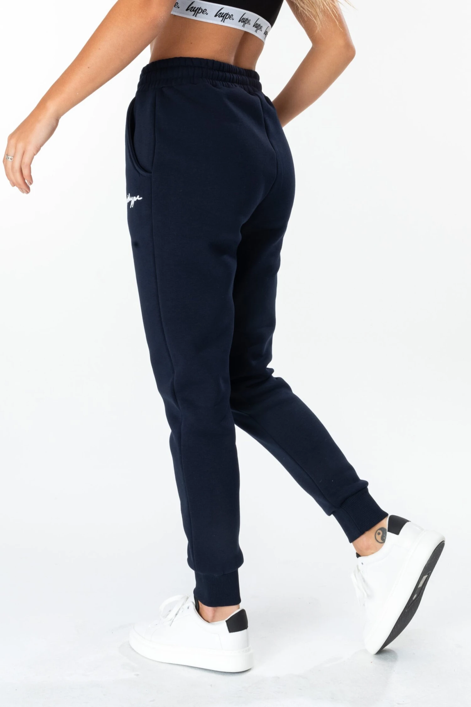 Update your essential wardrobe with a splash of navy. Meet the HYPE. Navy Scribble Logo Women’s Joggers, perfectly versatile to mix ‘n’ match up your looks whatever the occasion. Designed in 70% Polyester and 30% Cotton for the supreme amount of comfort. Wear with the matching HYPE. Women’s Navy Scribble Hoodie for the complete set, or wear with a pair of skinny fit jeans and kicks for a smart-casual look. Machine wash at 30 degrees.