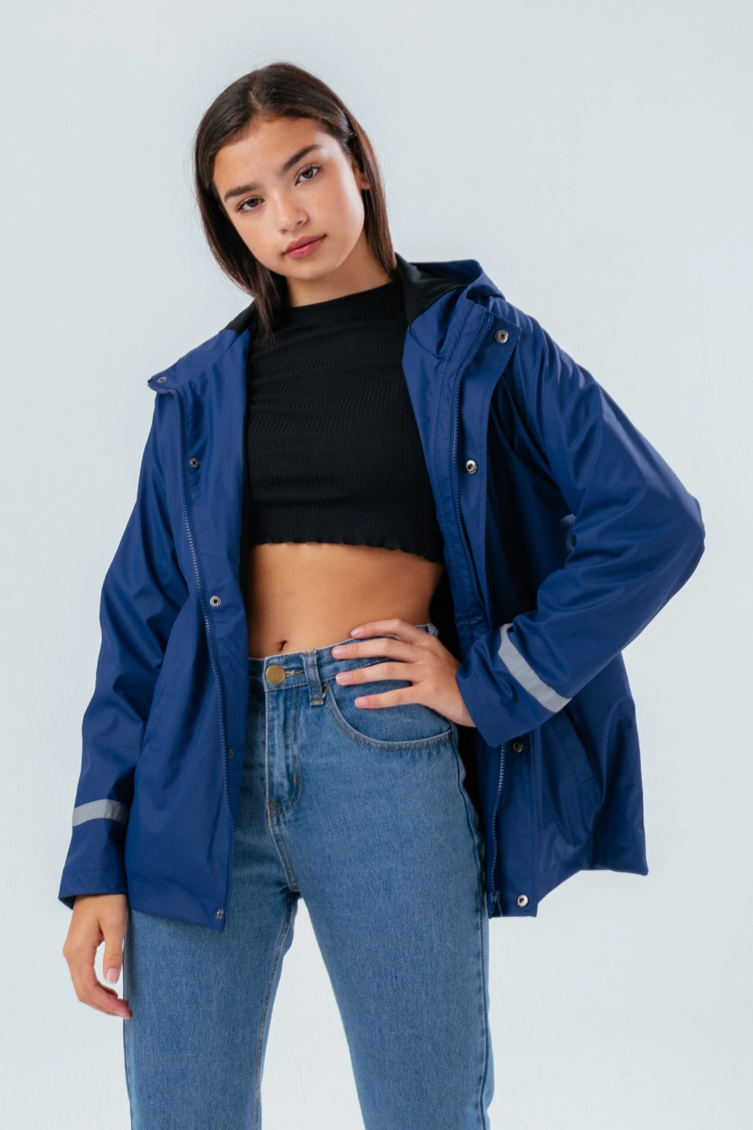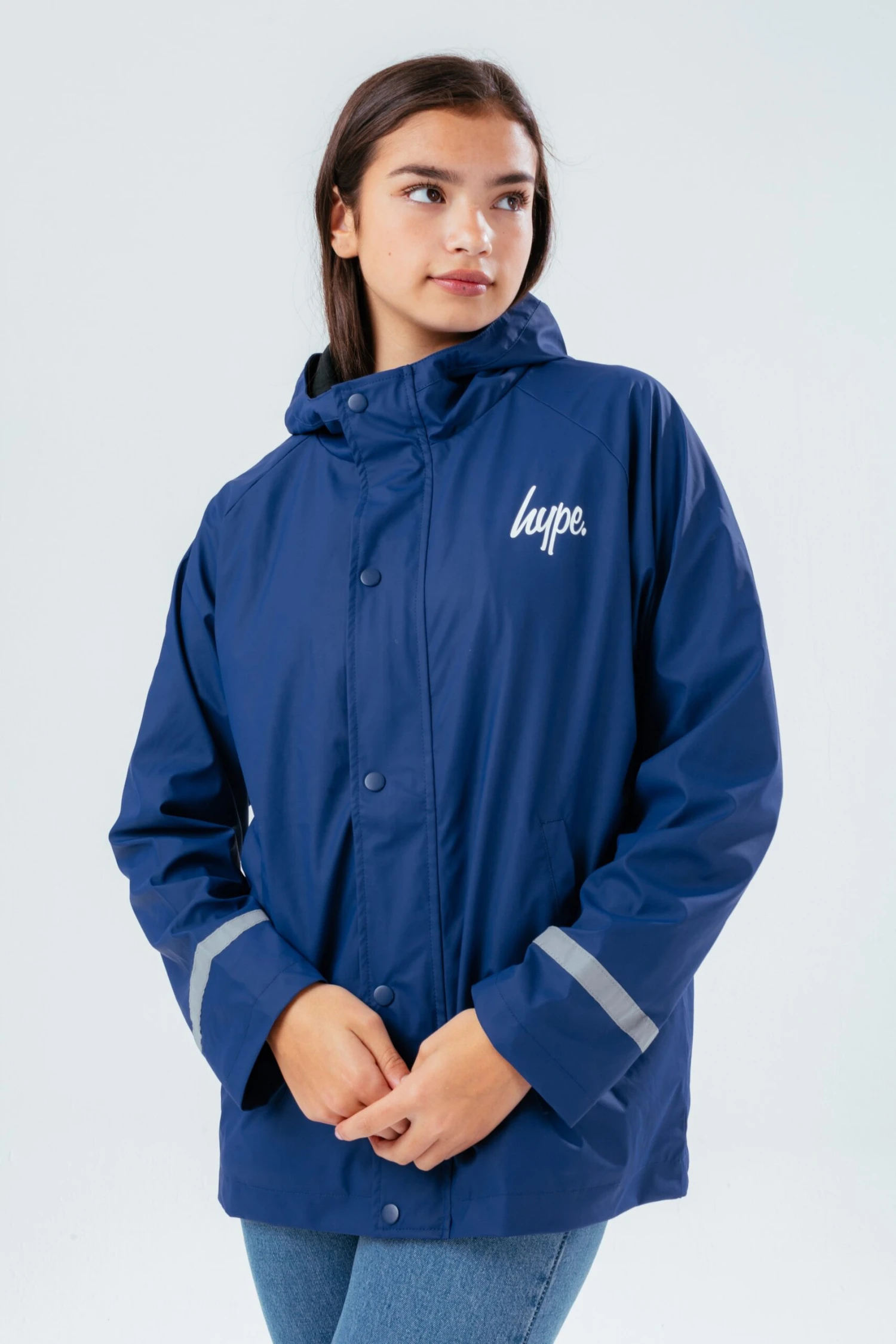 Don’t just keep warm andย dry in these colder months, do it with style with the HYPE.ย Navy Script Kids Rain Coat. Not just a winter warmer, this coat is perfect for those spring and summer showers. Made from 100% Polyester, and finished with aย fixed hood, zip, and press studs. Machine wash at 30ยฐC.