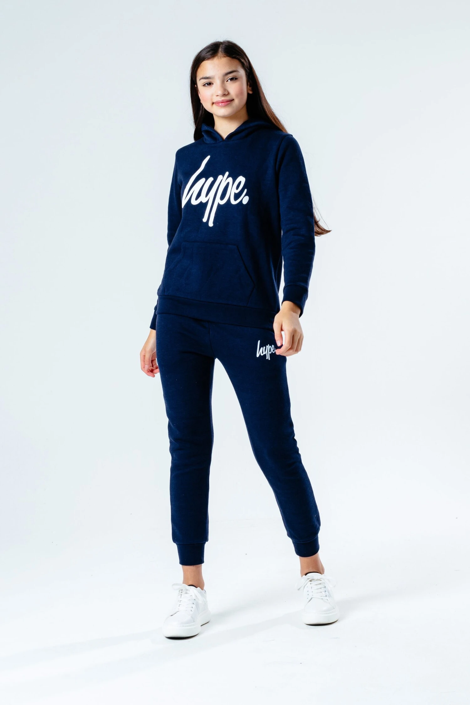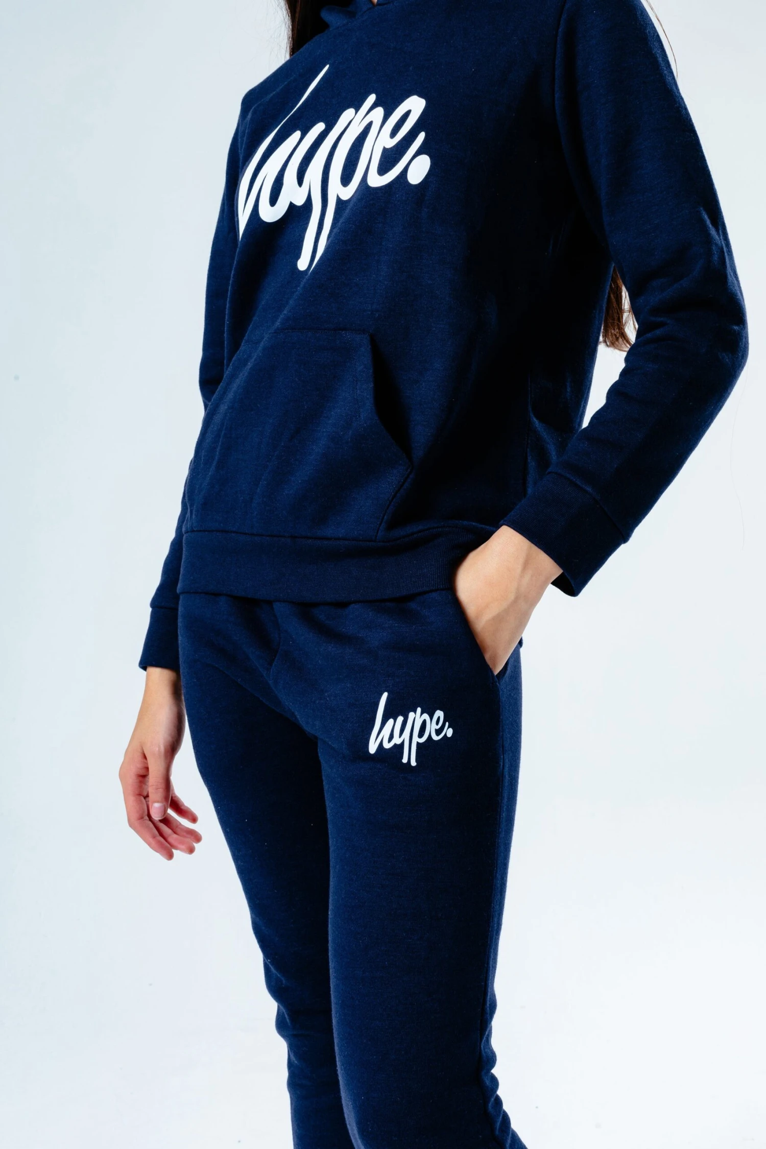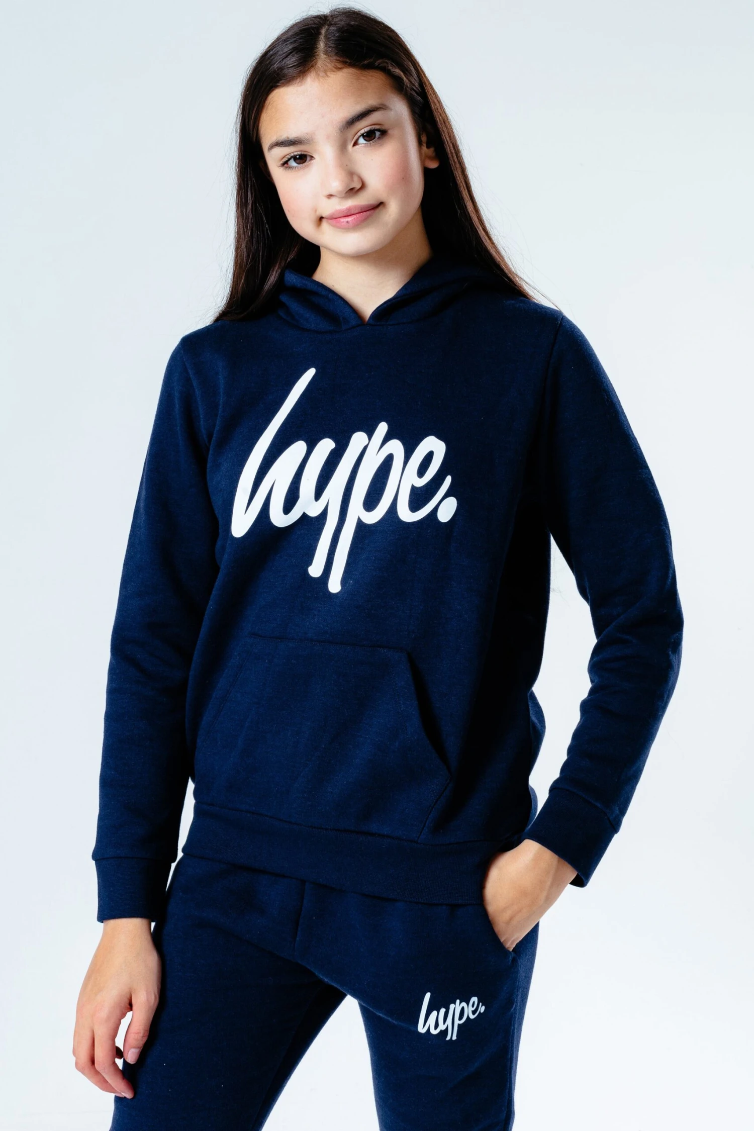 The HYPE. Navy Script Kids Tracksuit is perfect for off-duty casual days. Designed in a navy fabric base with the ultimate soft-touch sweat fabric for supreme comfort. The kids hoodie highlights a fixed hood, fitted hem and cuffs, and is finished with the iconic HYPE. script logo across the front. The joggers boast an elasticated waistband and fitted cuffs with the HYPE. mini script logo. Wear stand alone or as a set with a pair of box fresh kicks to complete the look. Machine wash at 30 degrees.