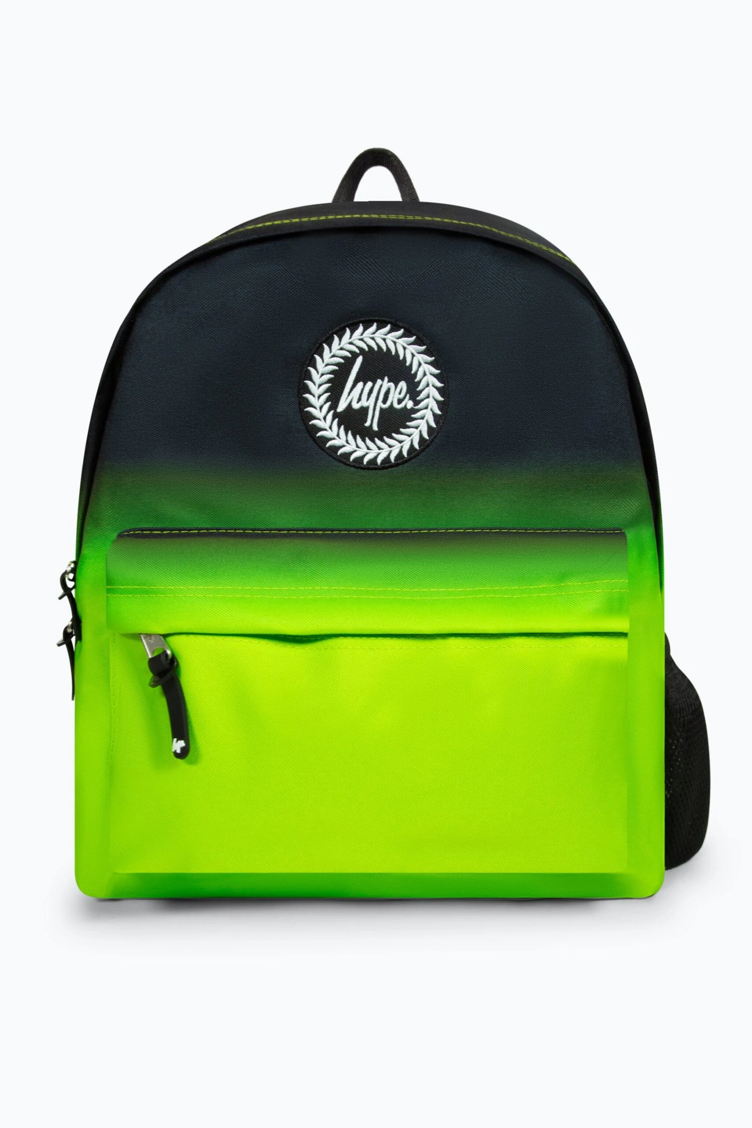 The HYPE. Gradient Fade Badge Backpack is your new accessory staple. With an all-over gradient effect in a neon green and black colour palette. Measuring at 42cm x 30cm x 12cm, finished with a front mini pocket, grab handle, embossed zips, branded inside lining. Boasting the iconic HYPE. crest badge in monochrome embroidered on the front and straps offer supreme comfort with just the right amount of padding on the back. This backpack features a mesh side bottle holder and inside padded laptop sleeve and velcro fastening. Wipe clean only.