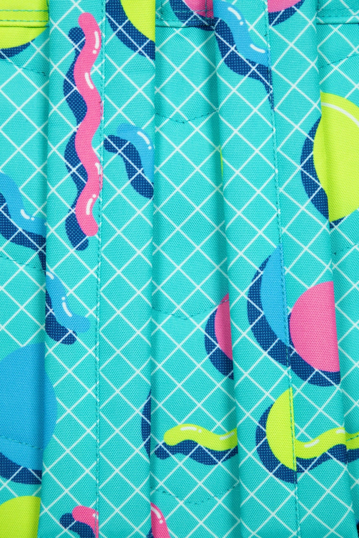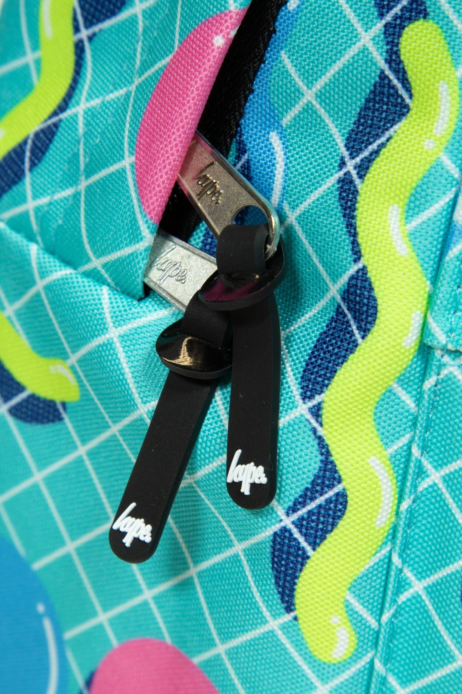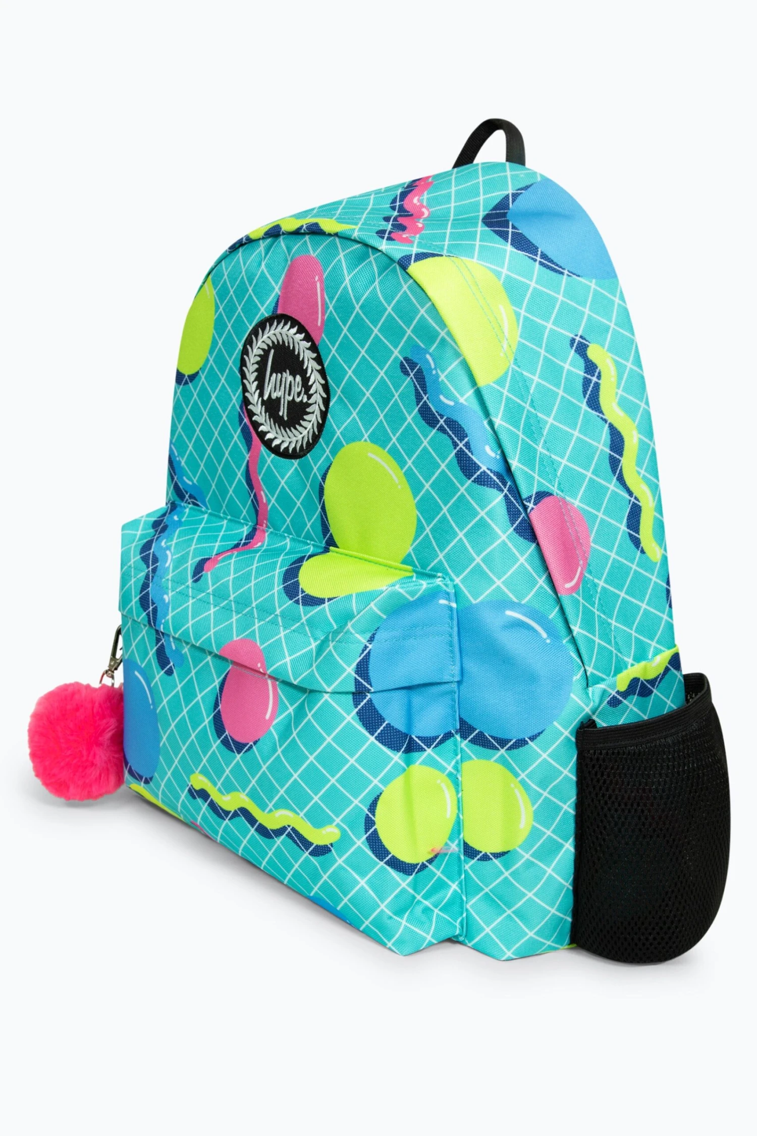 The HYPE. Retro Shapes Badge Backpack is your new accessory staple. Designed with hand drawn retro inspired shapes in a vibrant colour palette. Measuring at 42cm x 30cm x 12cm, finished with a front mini pocket, grab handle, embossed zips, branded inside lining. Boasting the iconic HYPE. crest badge in monochrome embroidered on the front and straps offer supreme comfort with just the right amount of padding on the back. This backpack features a mesh side bottle holder and inside padded laptop sleeve and velcro fastening. Wipe clean only.