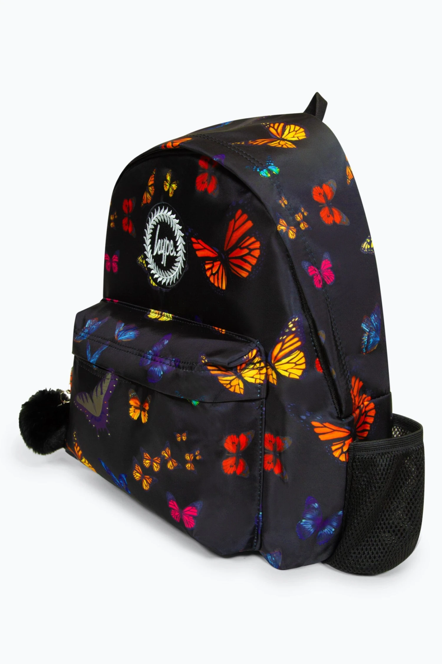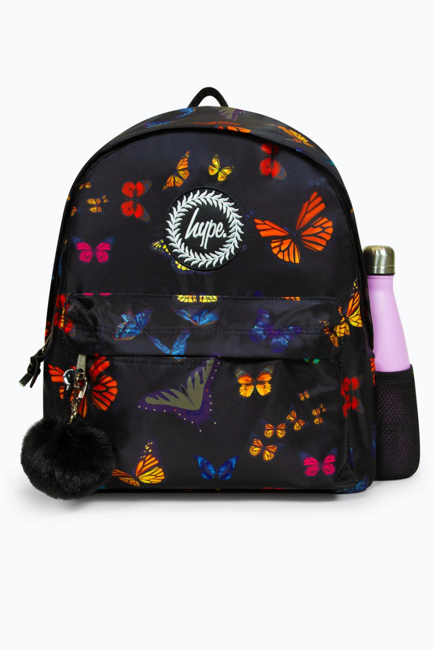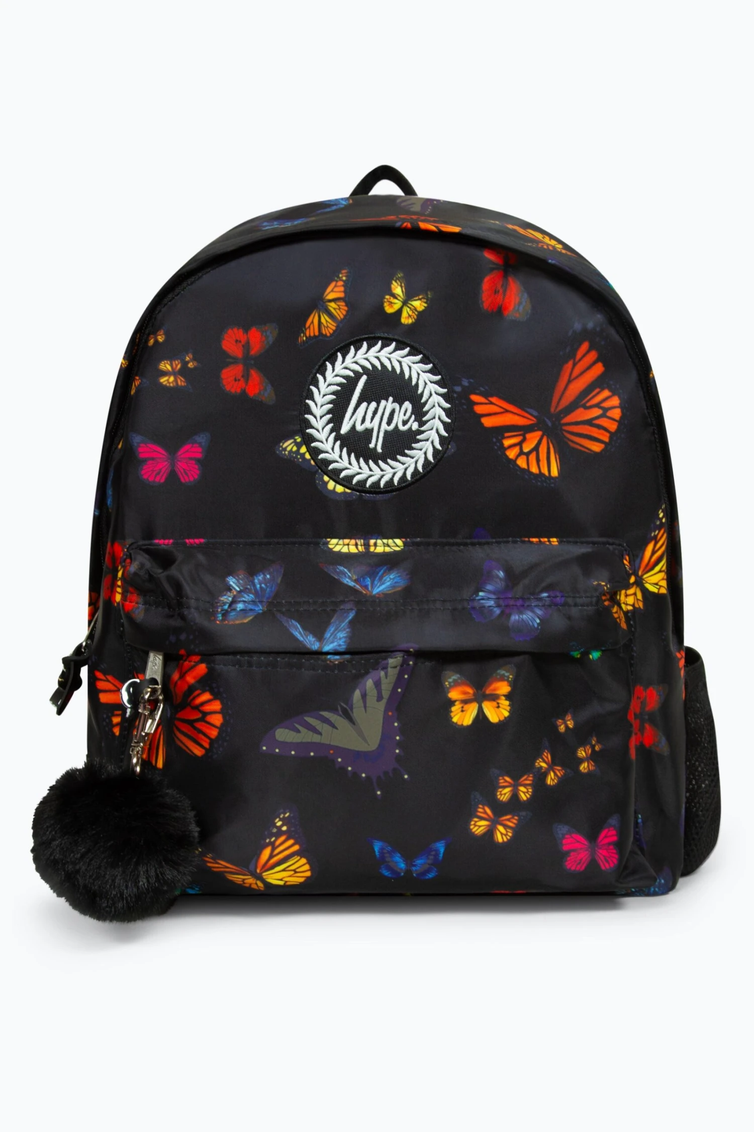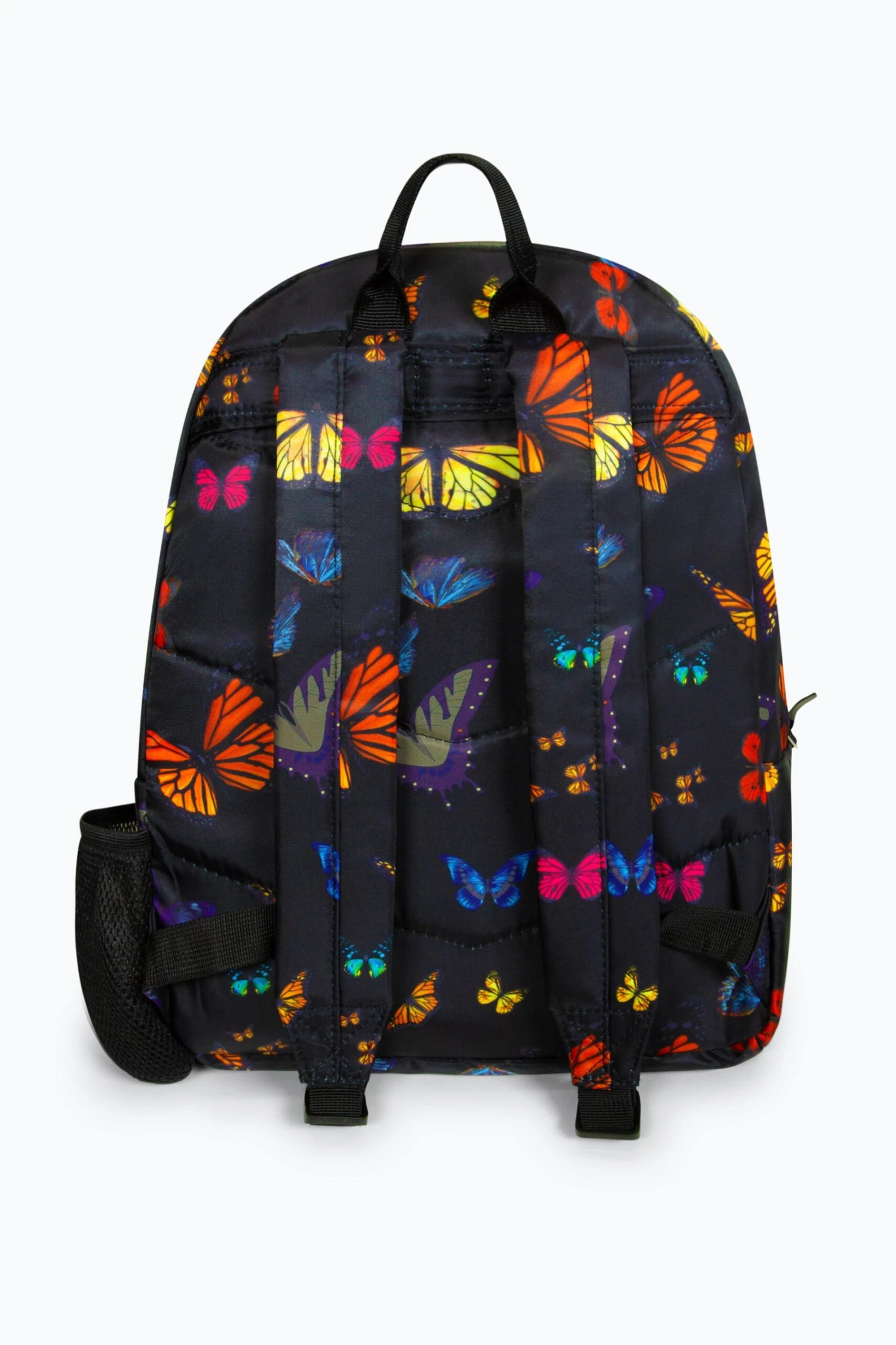 The HYPE. Winter Butterfly Badge Backpack is your new accessory staple. With an all-over butterfly inspired print in a multi colour palette. Measuring at 42cm x 30cm x 12cm, finished with a front mini pocket, grab handle, embossed zips, branded inside lining. Boasting the iconic HYPE. crest badge in monochrome embroidered on the front and straps offer supreme comfort with just the right amount of padding on the back. This backpack features a mesh side bottle holder and inside padded laptop sleeve and velcro fastening. Wipe clean only.