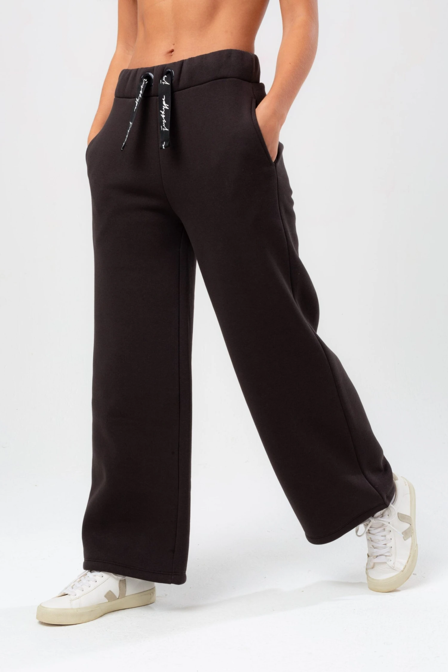 Meet the HYPE. Womenโs Ganache JustHype Scribble Drawcord Wide Leg Joggers. Designed in a soft-touch 65% cotton 35% polyester ganache fabric blend for the ultimate amount of comfort in our wide leg jogger shape. Finished with an elasticated waistband, pockets, and black branded drawcords. Wear with an oversized hoodie for an off-duty look. Machine wash at 30 degrees.